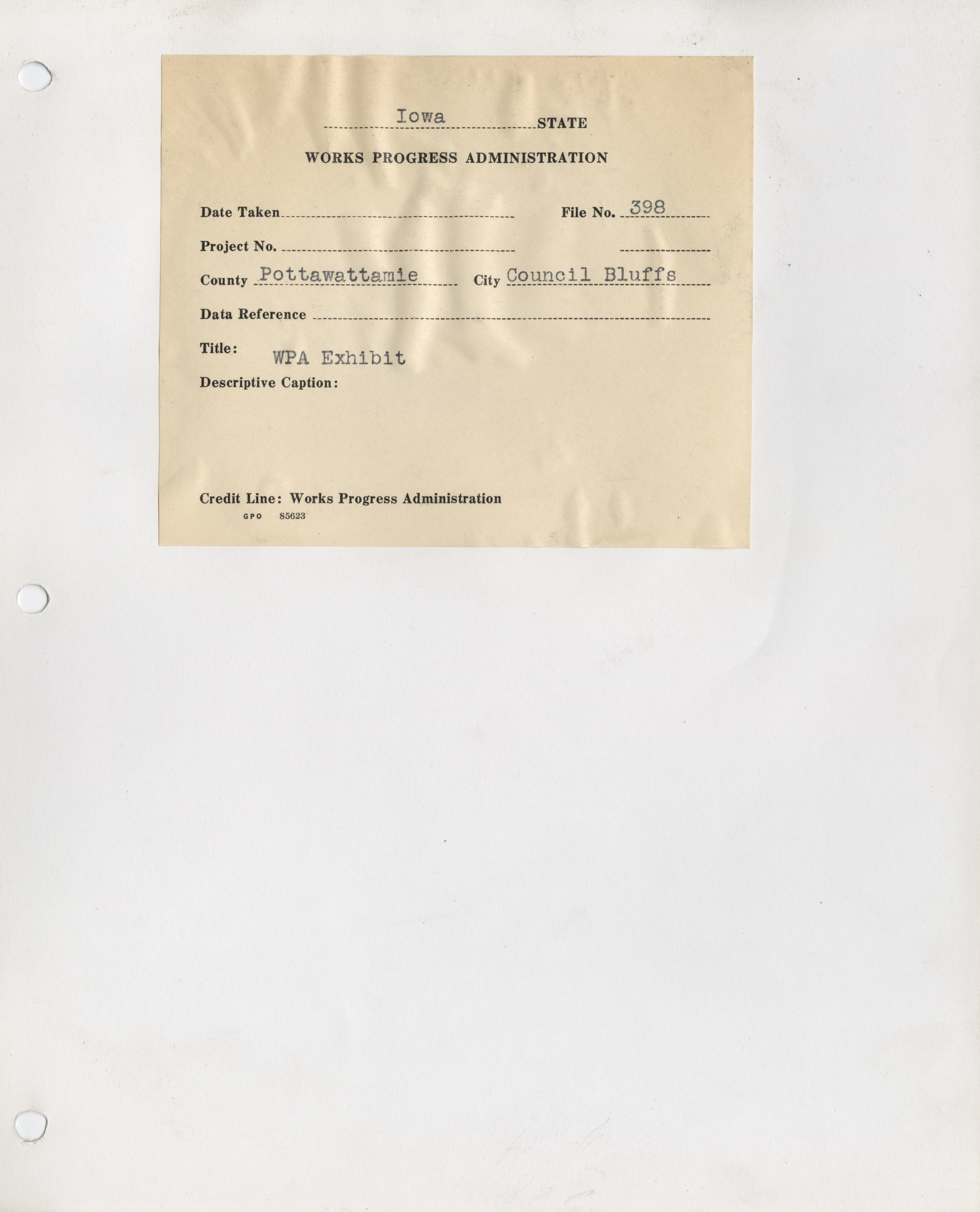 - "Photograph of WPA exhibit in Council Bluffs", Work Projects Administration (Iowa) Photographs, Iowa State University Library Digital Collections