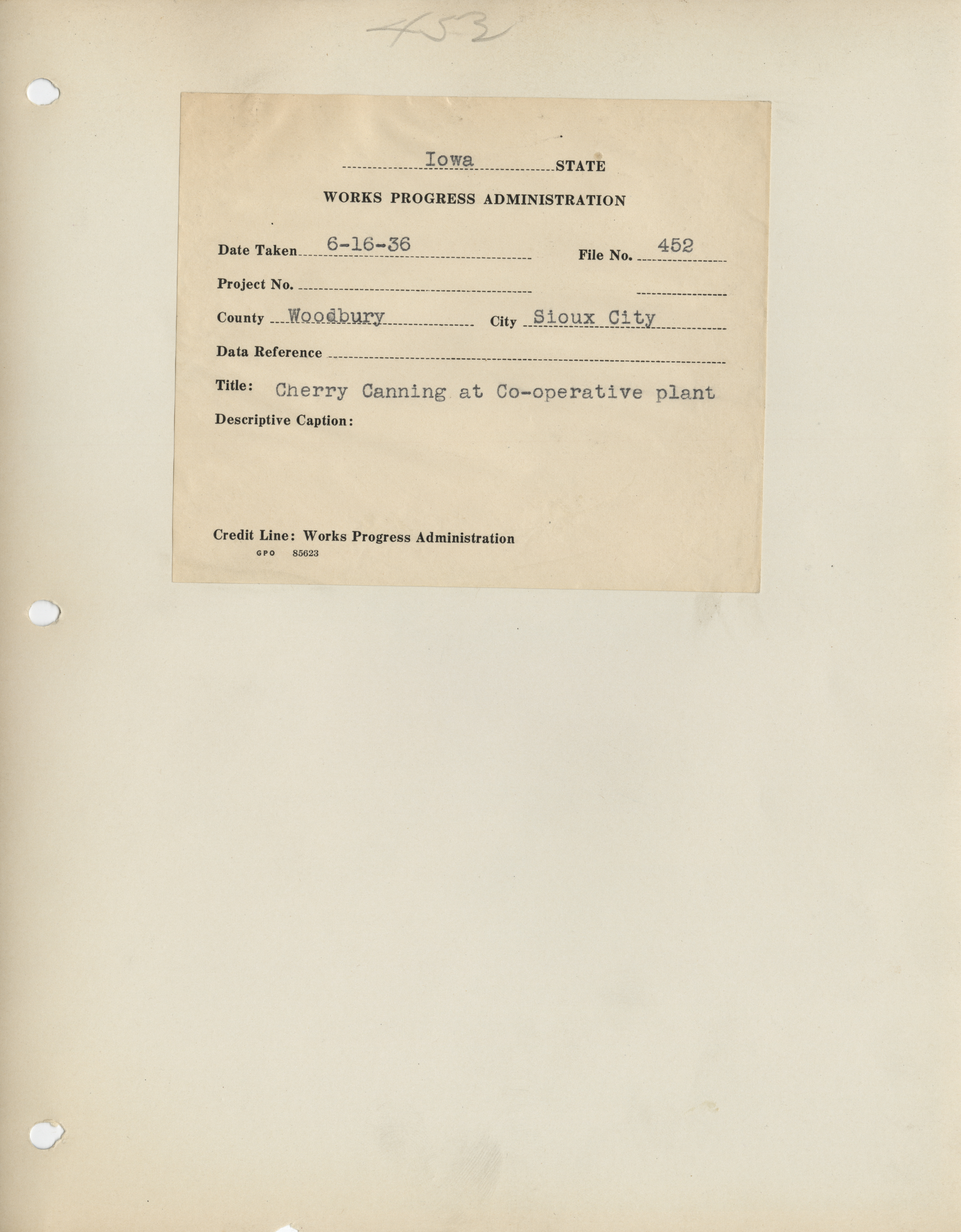 - "Photograph of people canning cherries at the co-operative plant in Sioux City", Work Projects Administration (Iowa) Photographs, Iowa State University Library Digital Collections