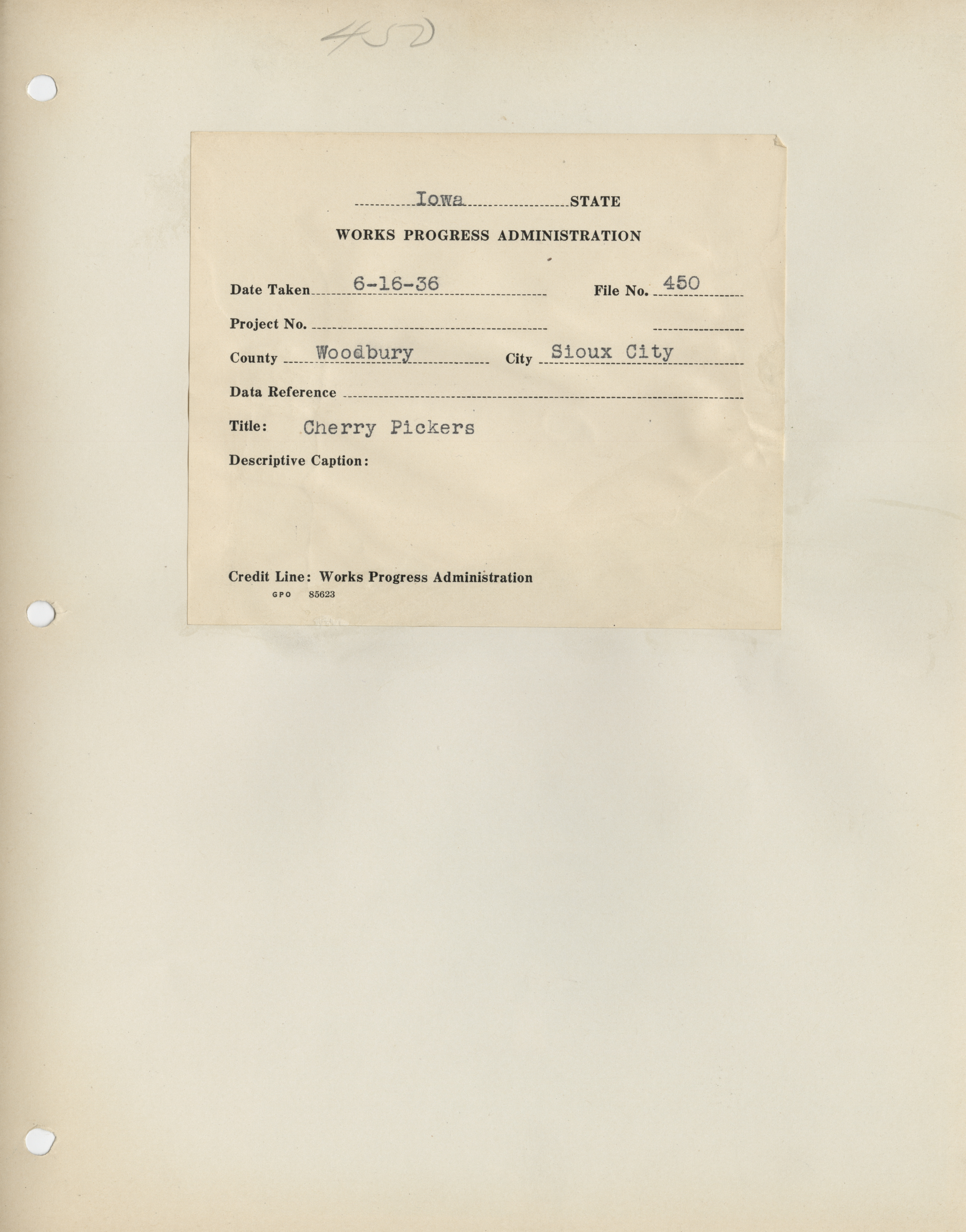 - "Photograph of people picking cherries in Sioux City", Work Projects Administration (Iowa) Photographs, Iowa State University Library Digital Collections