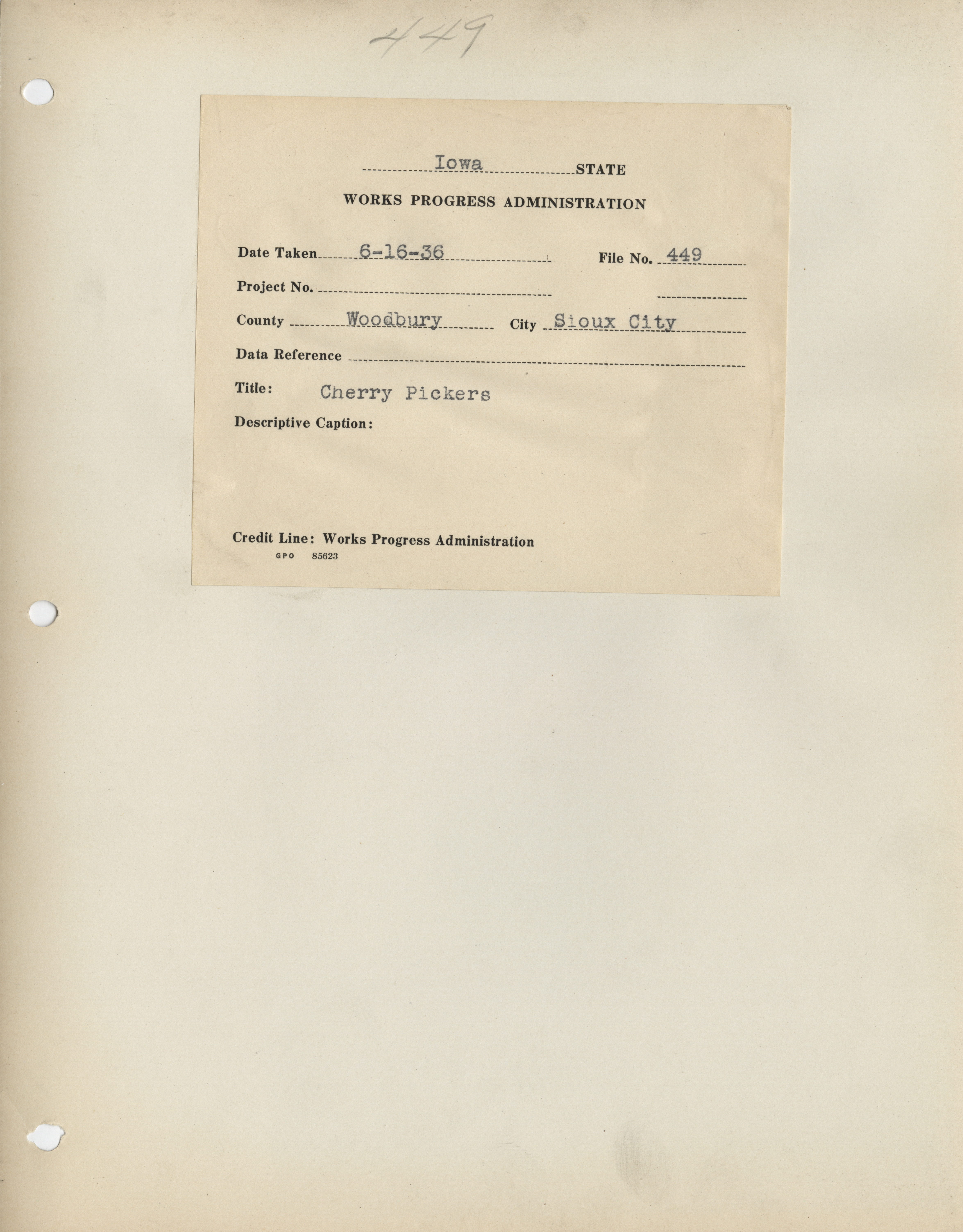 - "Photograph of people picking cherries in Sioux City", Work Projects Administration (Iowa) Photographs, Iowa State University Library Digital Collections
