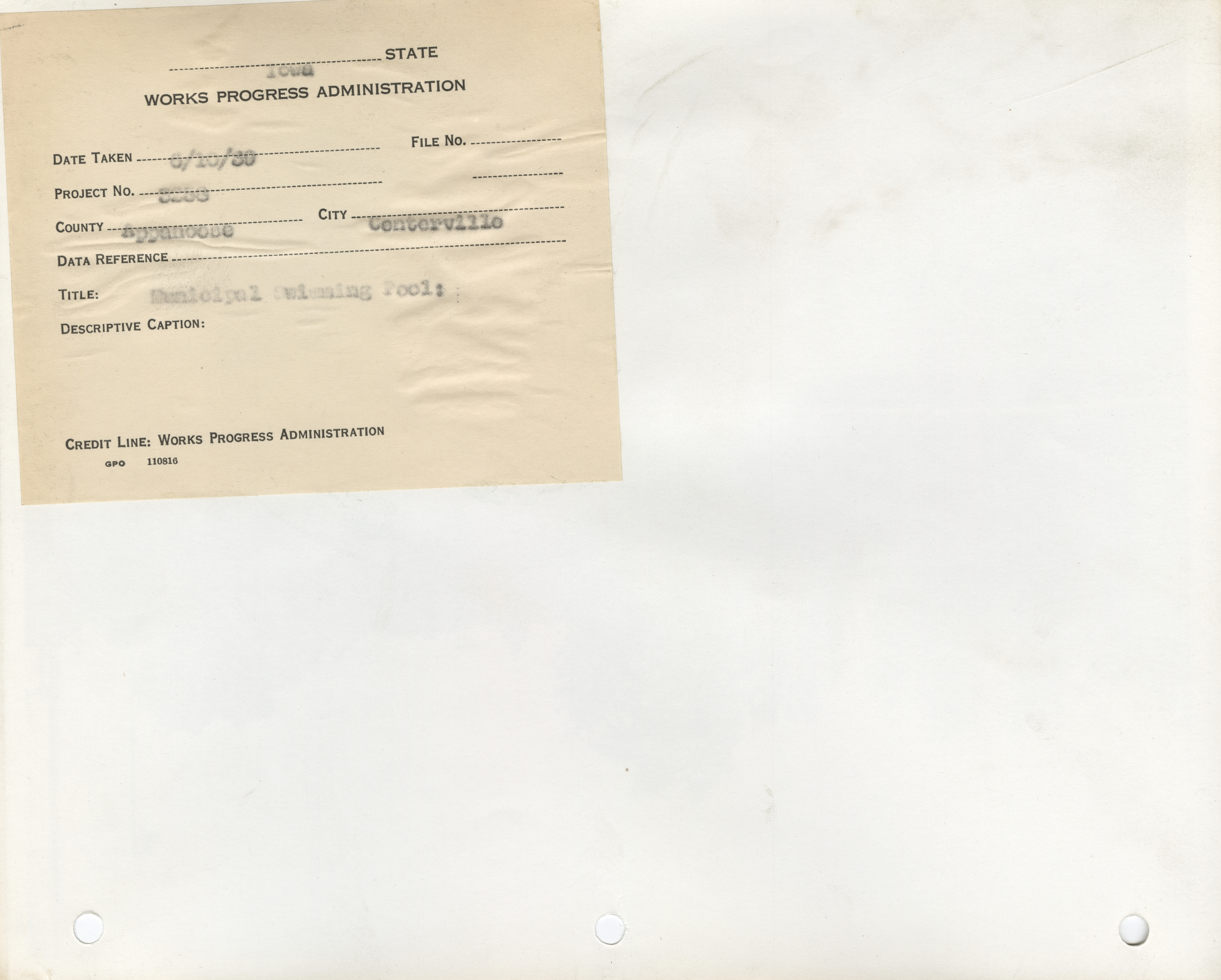 - "Photograph of the municipal building and swimming pool in Centerville", Work Projects Administration (Iowa) Photographs, Iowa State University Library Digital Collections