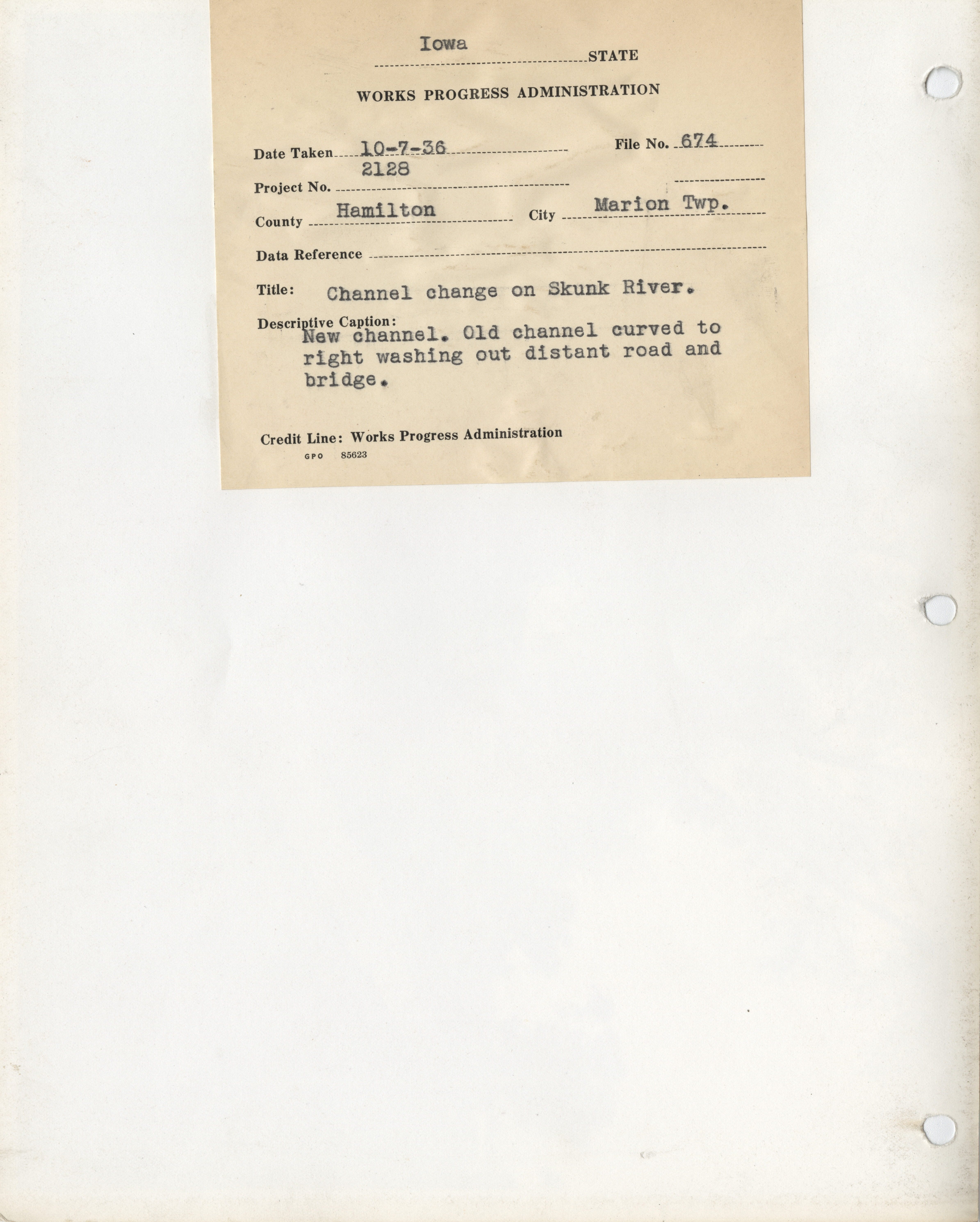 - "Photograph of a Skunk River channel change", Work Projects Administration (Iowa) Photographs, Iowa State University Library Digital Collections