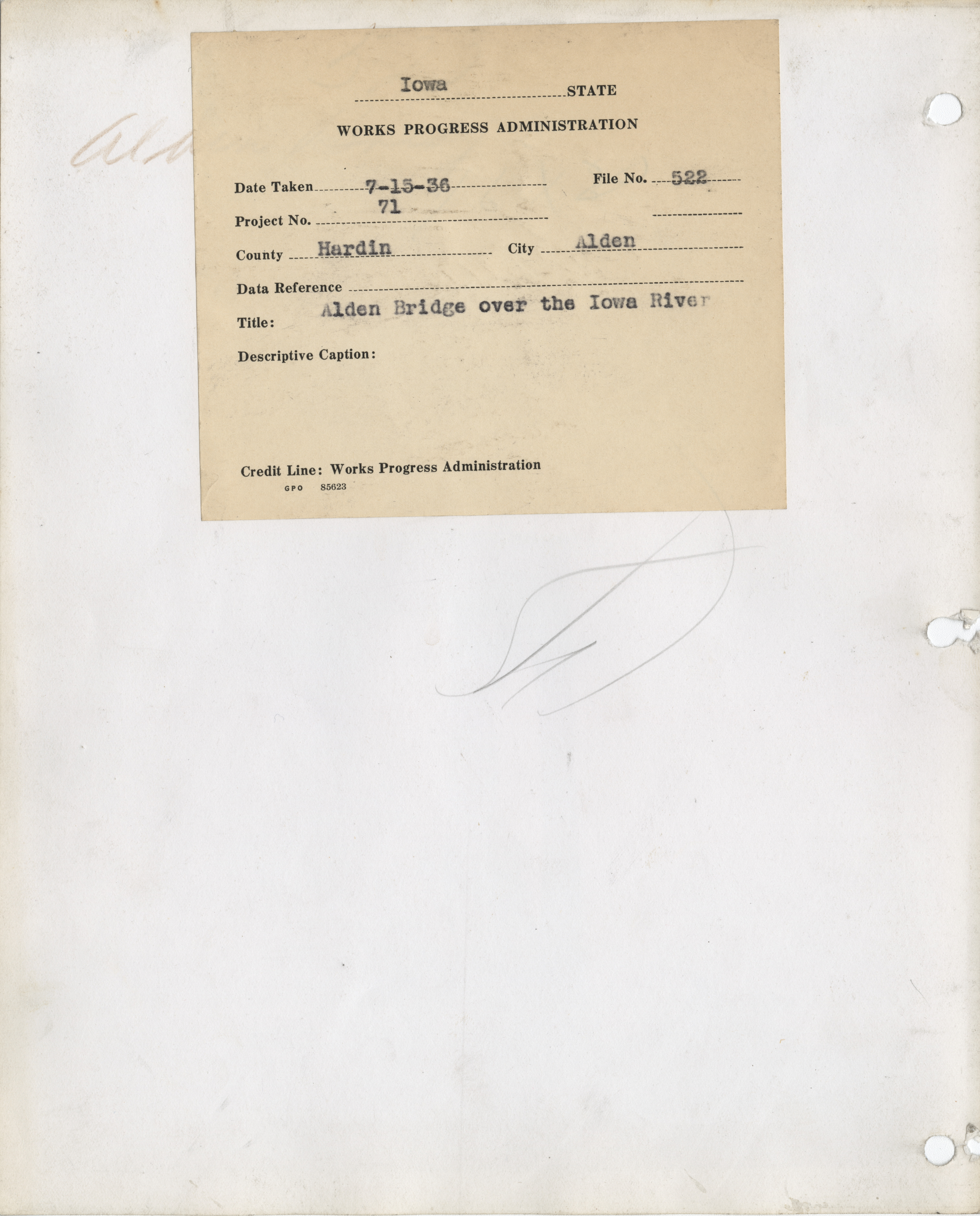 - "Photograph of a bridge over the Iowa River in Alden", Work Projects Administration (Iowa) Photographs, Iowa State University Library Digital Collections