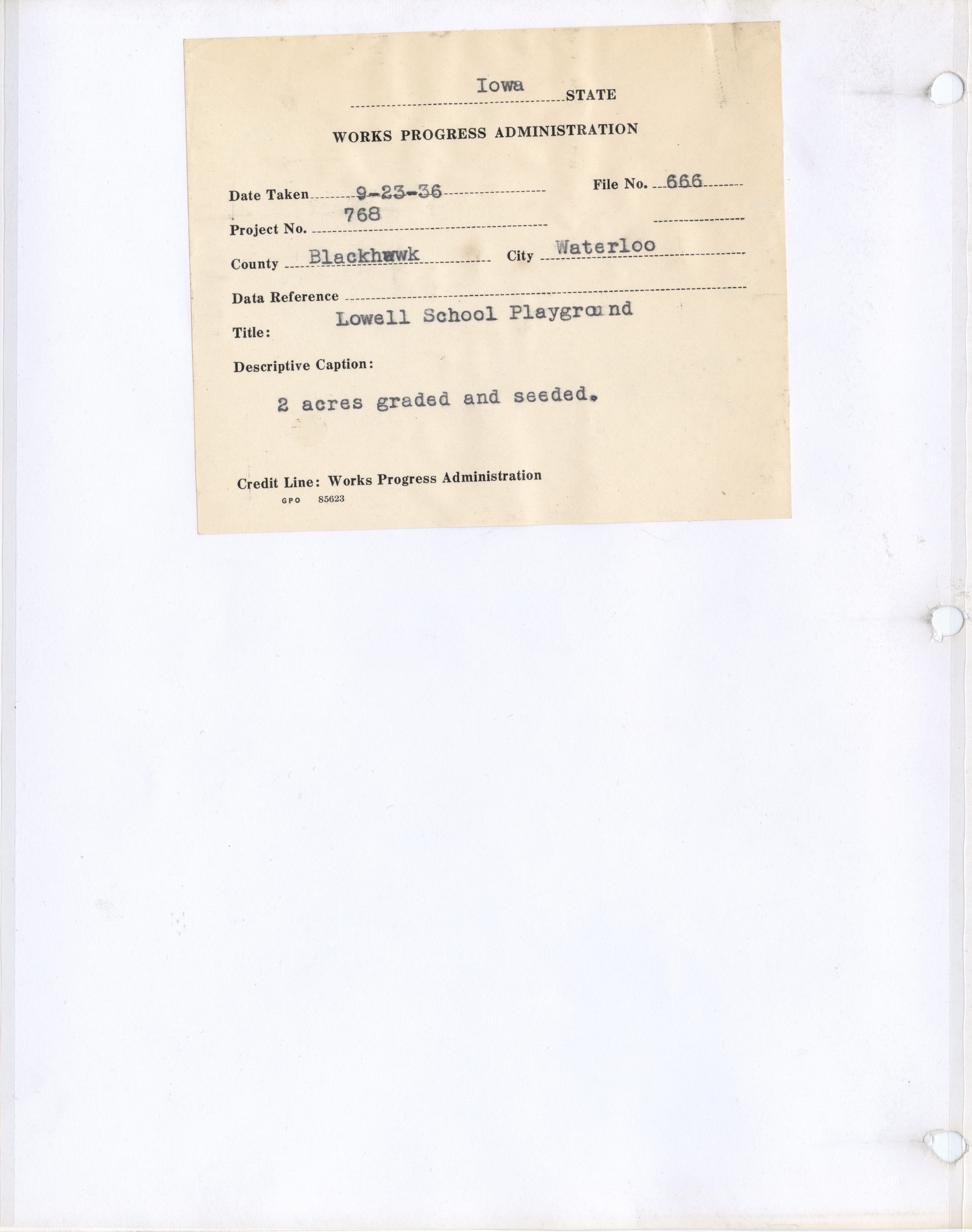 - "Photograph of a playground in Lowell School", Work Projects Administration (Iowa) Photographs, Iowa State University Library Digital Collections