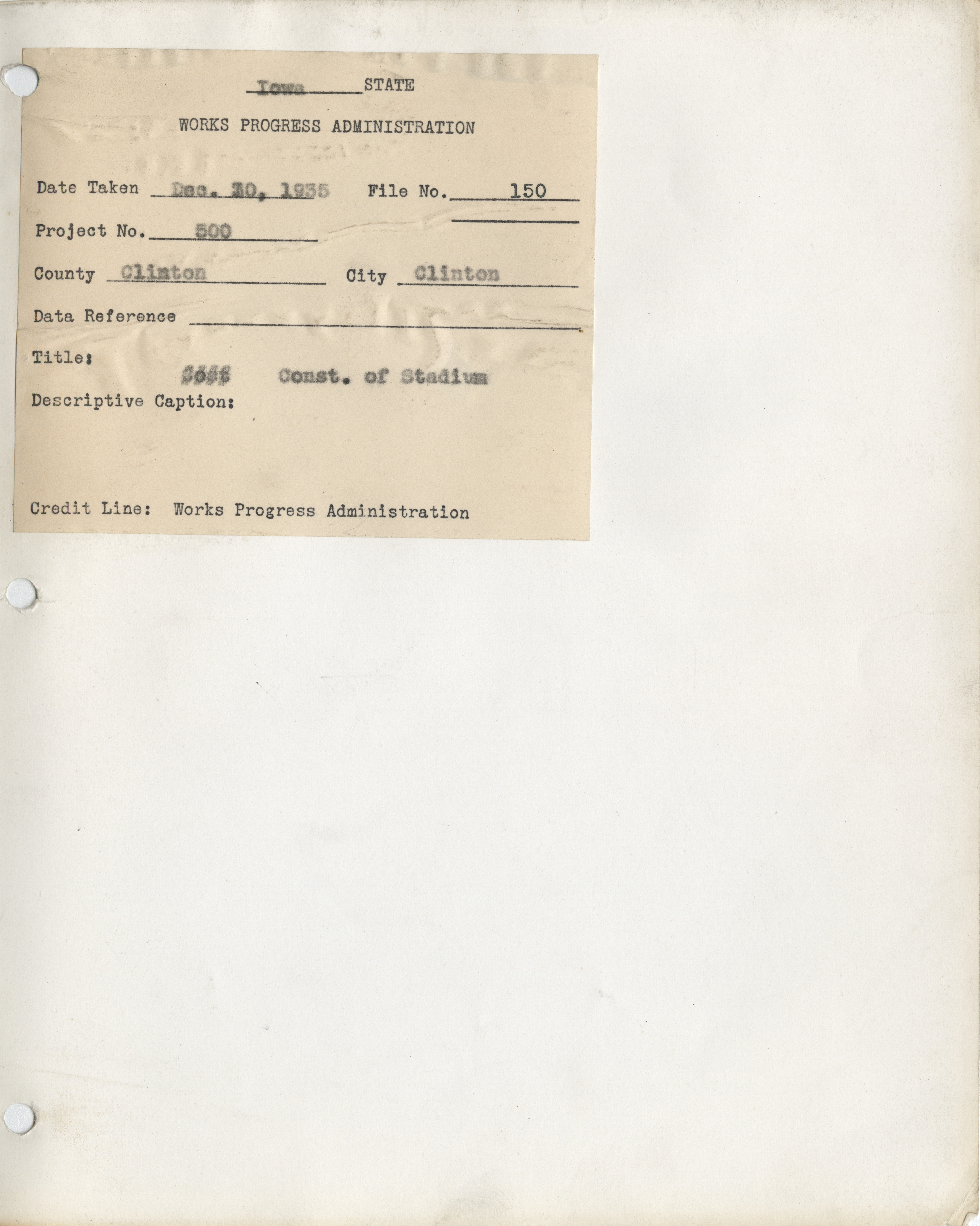 - "Photograph of people constructing a stadium in Clinton", Work Projects Administration (Iowa) Photographs, Iowa State University Library Digital Collections