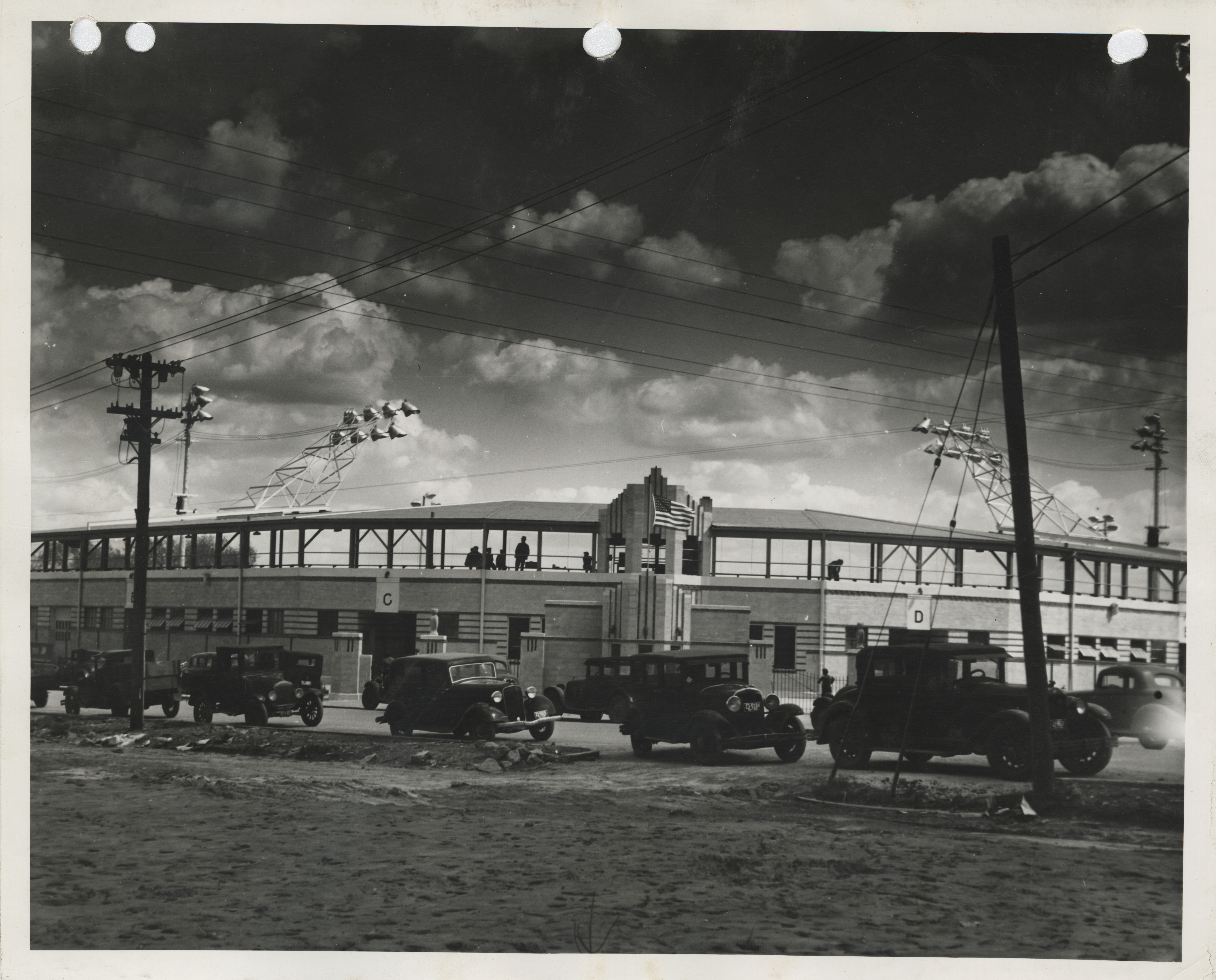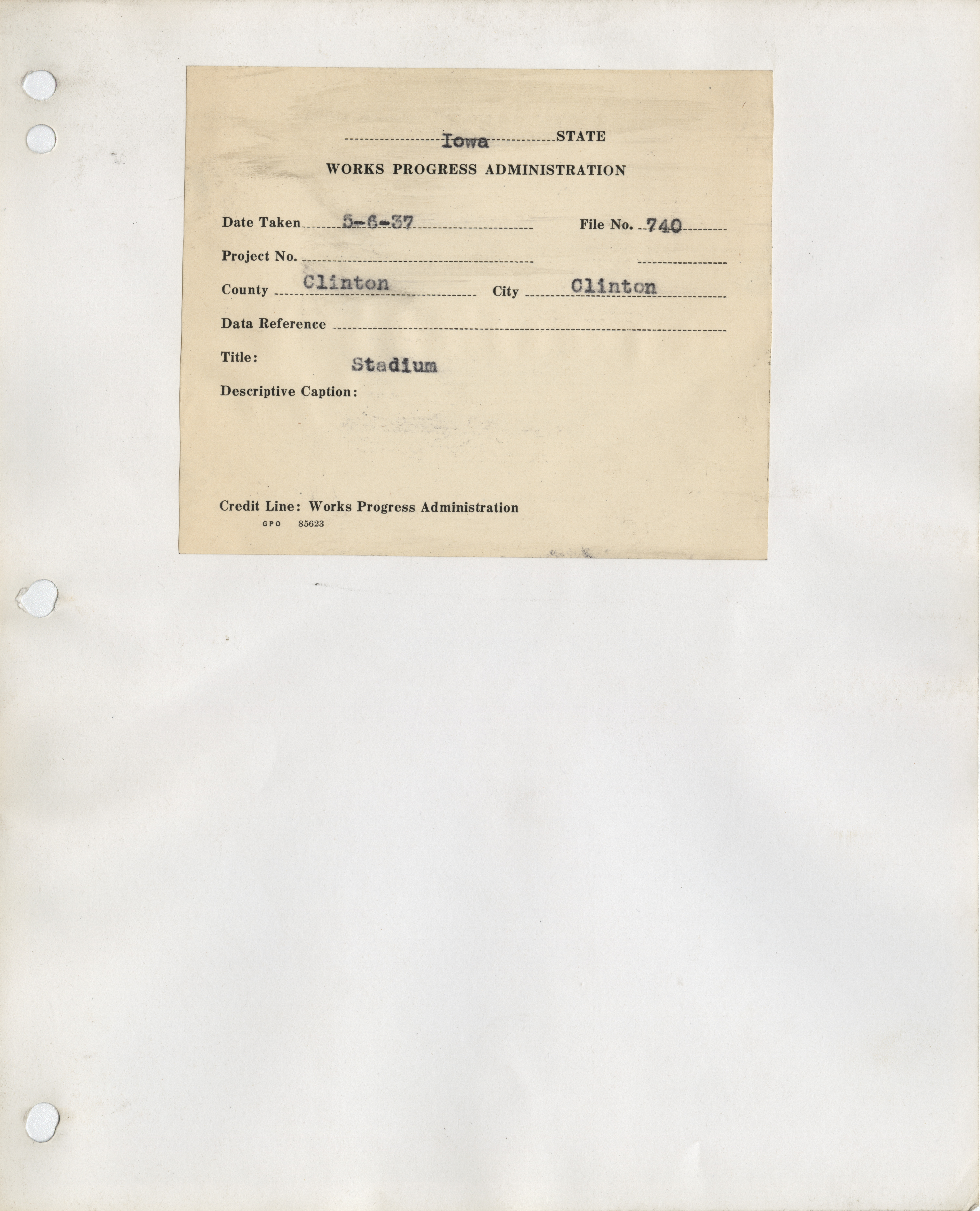 - "Photograph of cars parked outside the completed stadium in Clinton", Work Projects Administration (Iowa) Photographs, Iowa State University Library Digital Collections