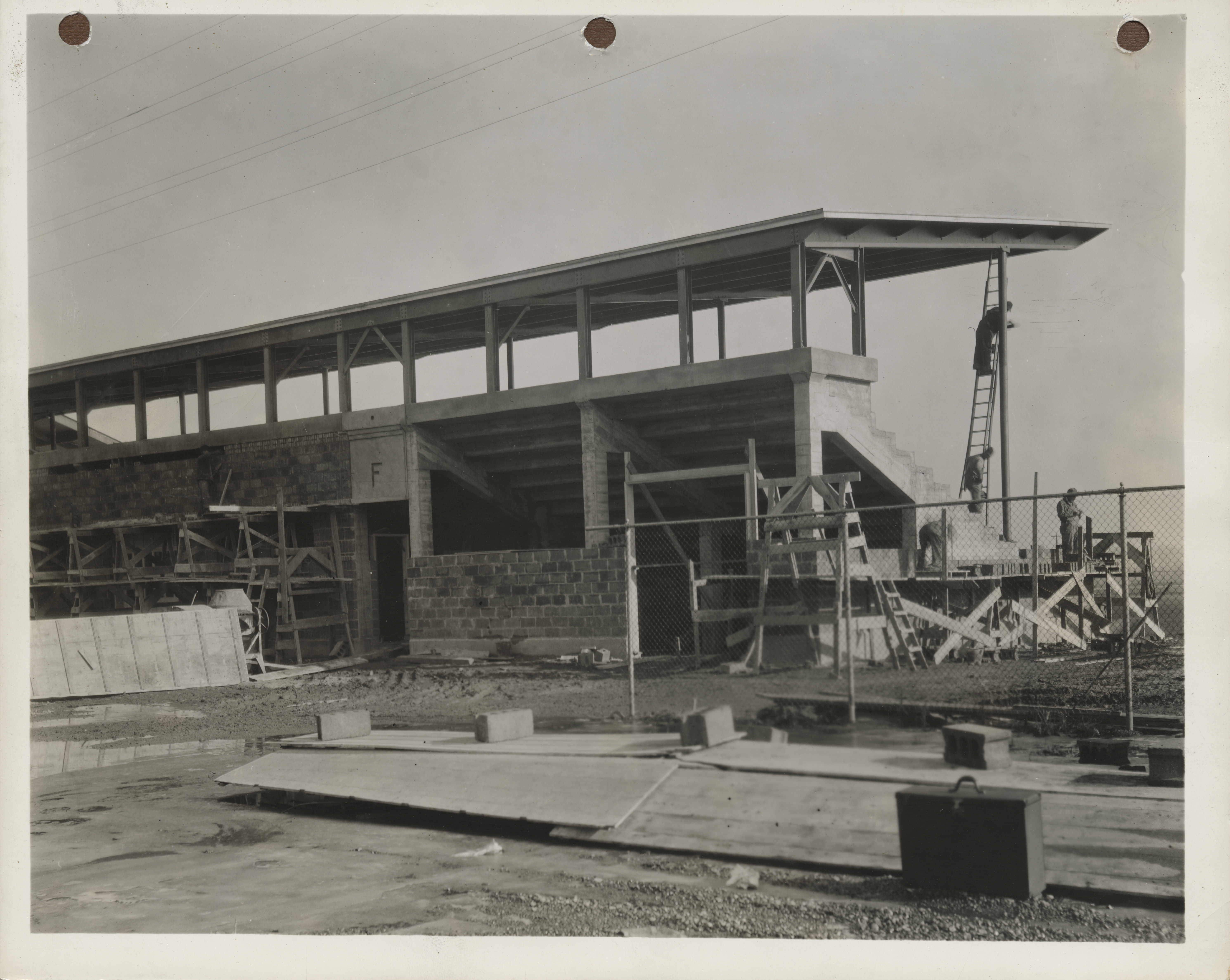 - "Photograph of people working on the stands at a stadium in Clinton", Work Projects Administration (Iowa) Photographs, Iowa State University Library Digital Collections