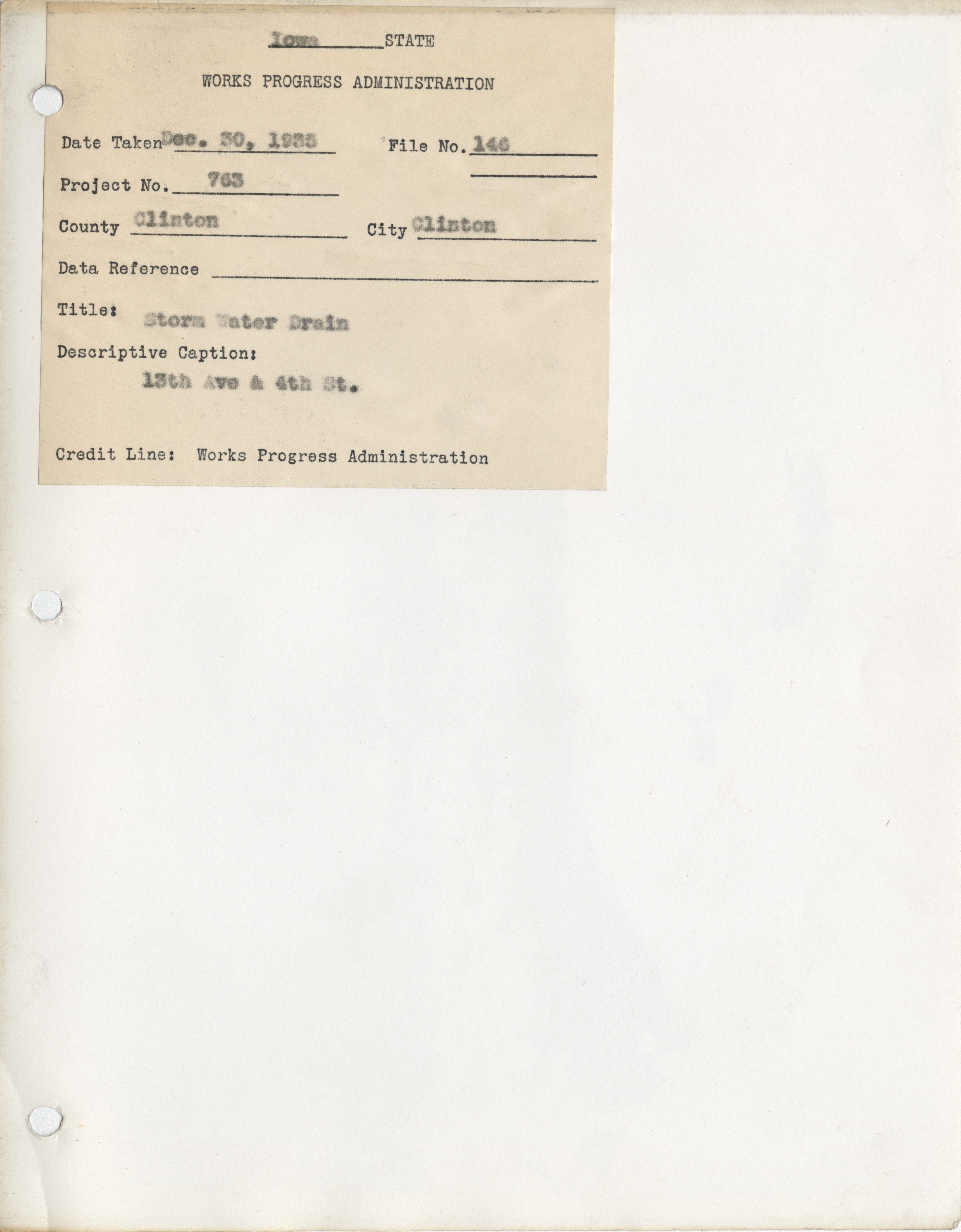 - "Photograph of people constructing a storm drain at 13th ave. and 4th st. in Clinton", Work Projects Administration (Iowa) Photographs, Iowa State University Library Digital Collections