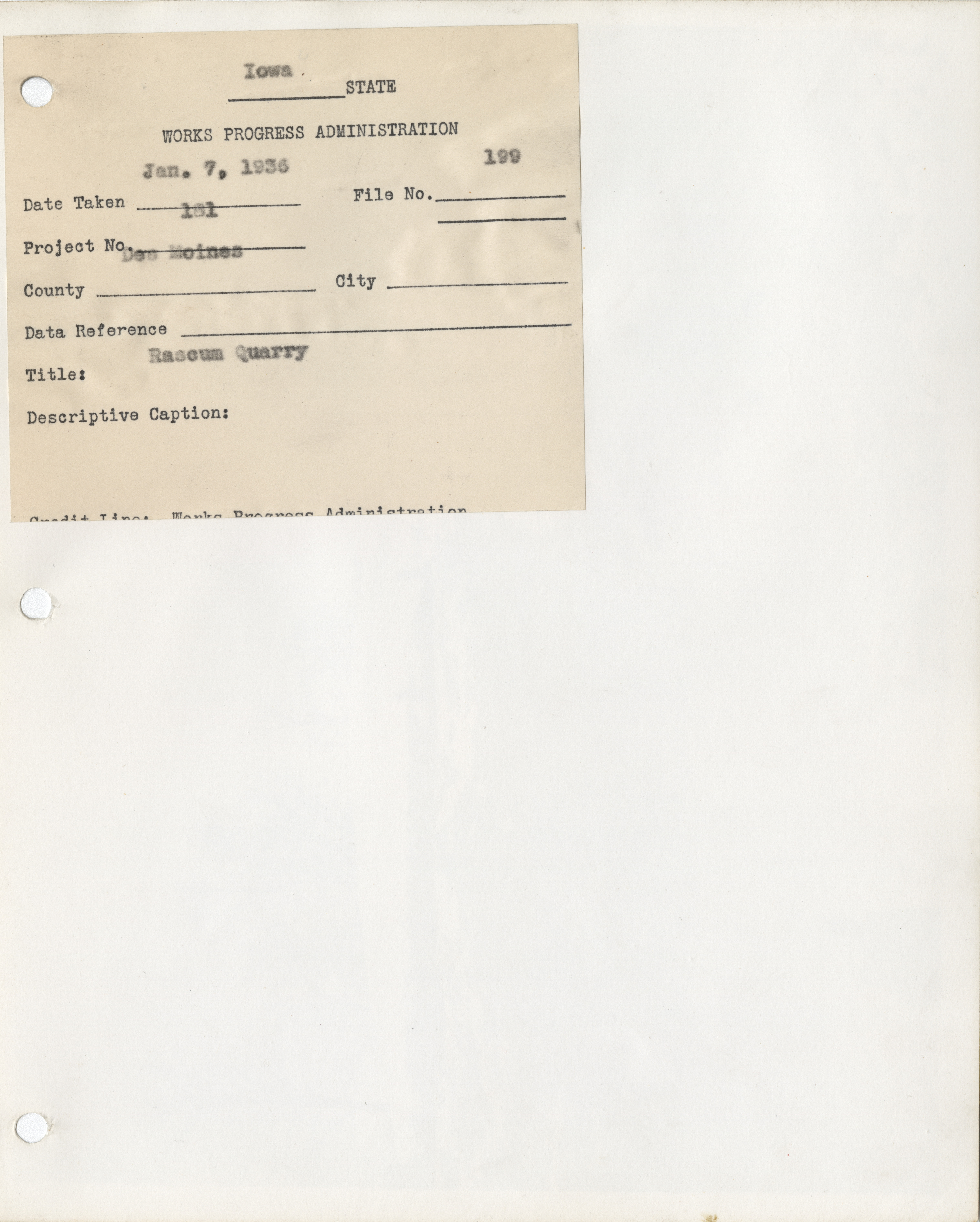 - "Photograph of people working at Rascum Quarry in Des Moines County", Work Projects Administration (Iowa) Photographs, Iowa State University Library Digital Collections