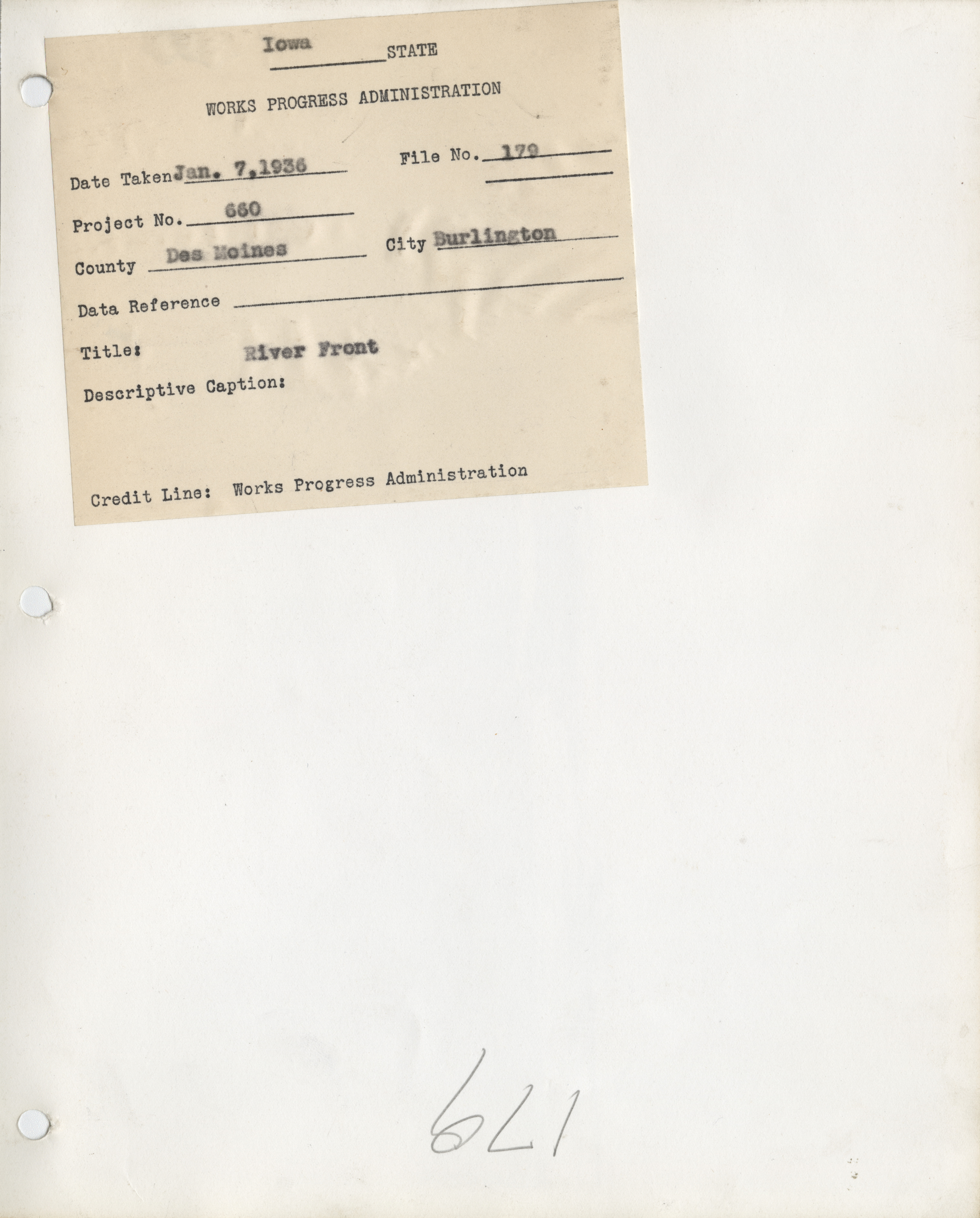 - District 2. Des Moines County. Burlington. Riverfront. Project 660. (3 b/w photographs), 1936-1938