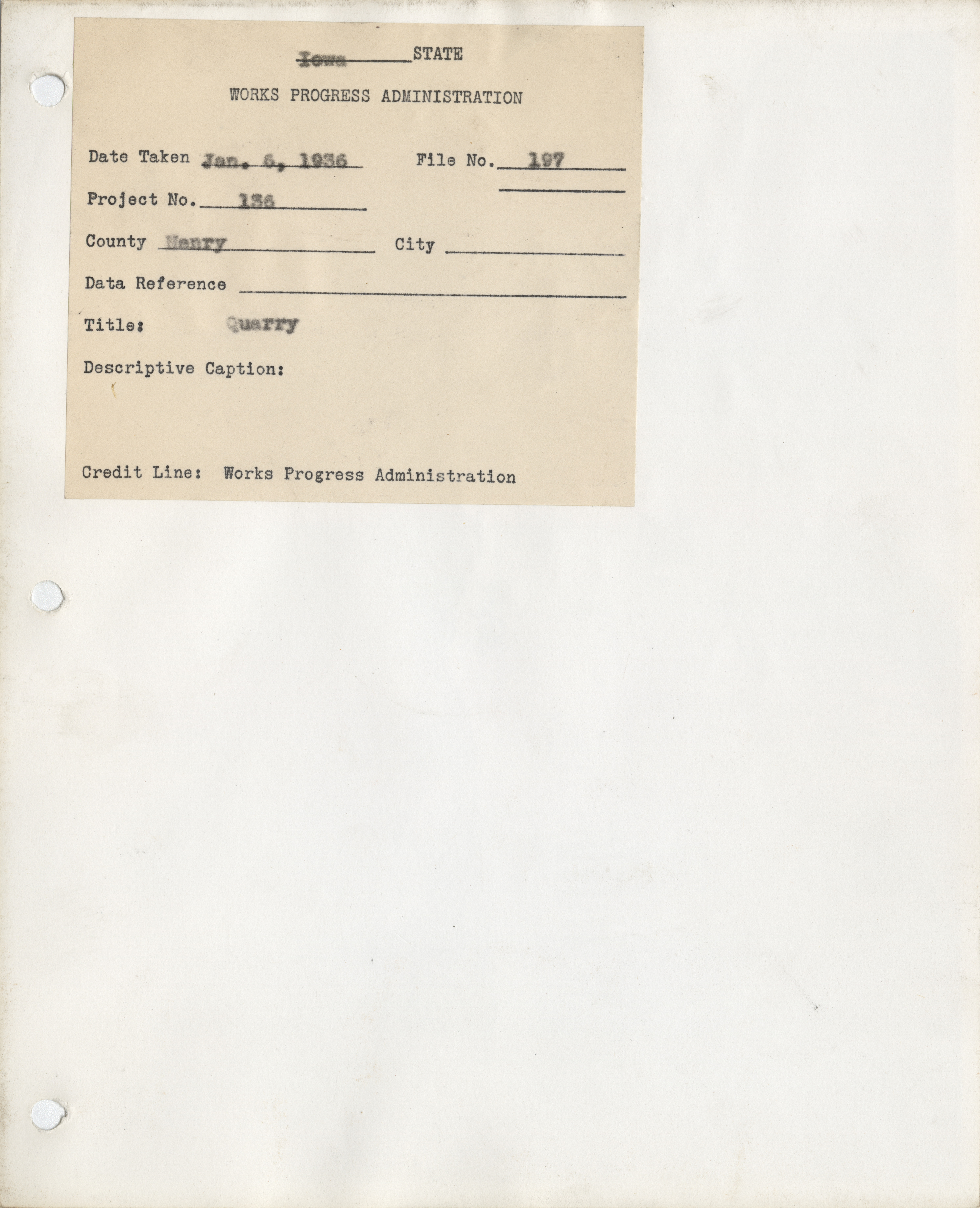 - "Photograph of people working at a quarry in Henry County", Work Projects Administration (Iowa) Photographs, Iowa State University Library Digital Collections