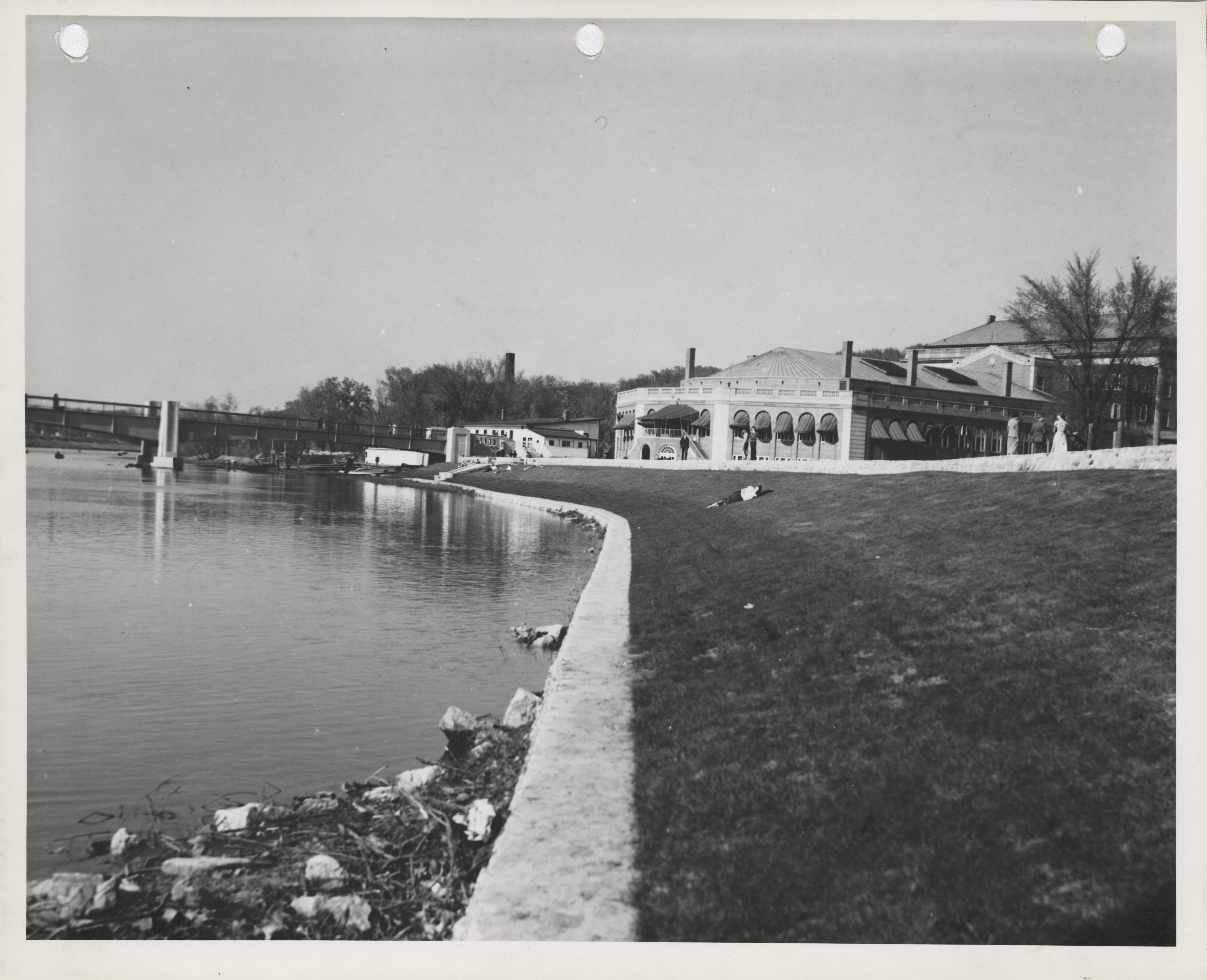 - Photograph of a person lying on a levee in Iowa City