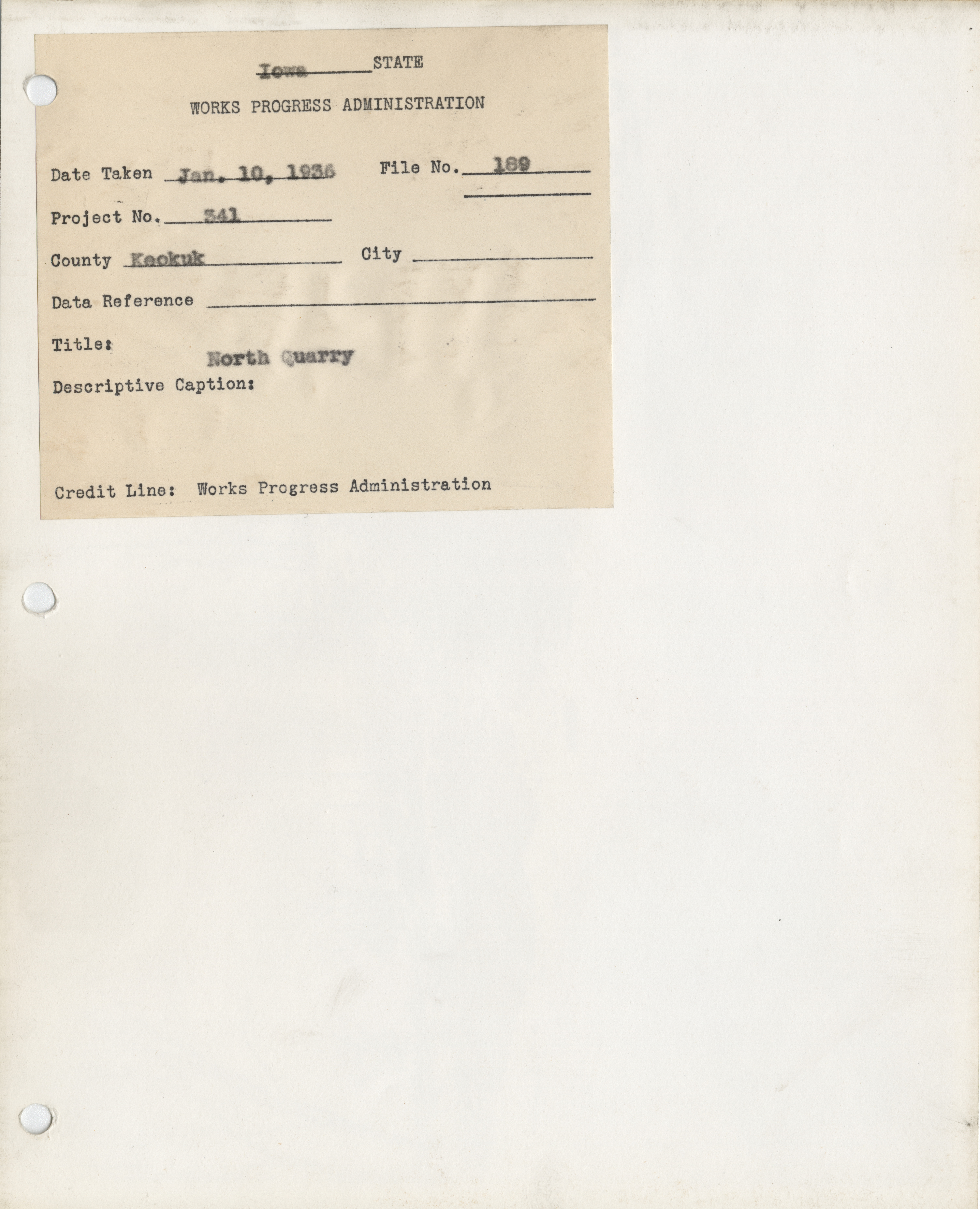 - "Photograph of a person working at North Quarry in Keokuk County", Work Projects Administration (Iowa) Photographs, Iowa State University Library Digital Collections