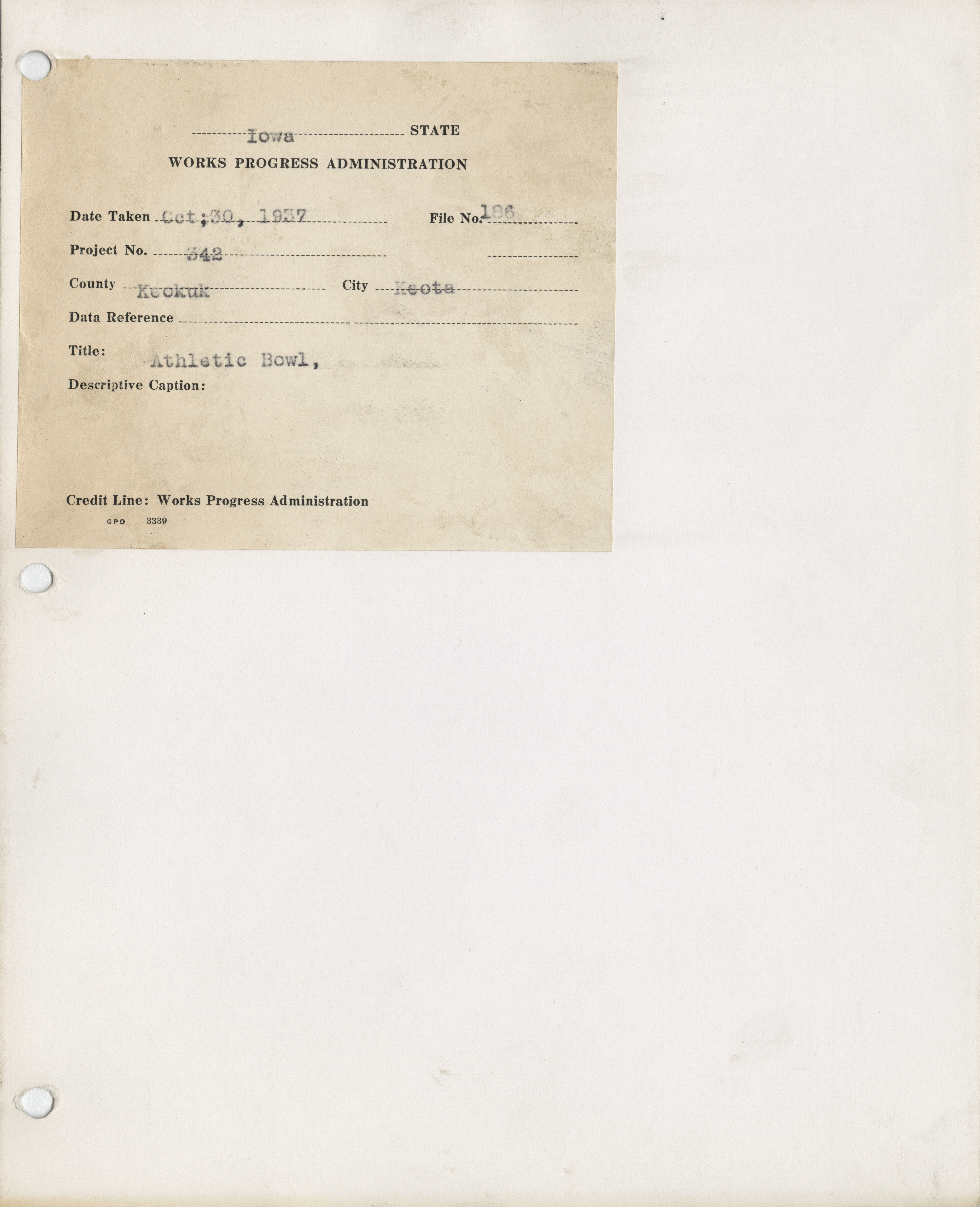 - "Photograph of the athletic bowl in Keota", Work Projects Administration (Iowa) Photographs, Iowa State University Library Digital Collections