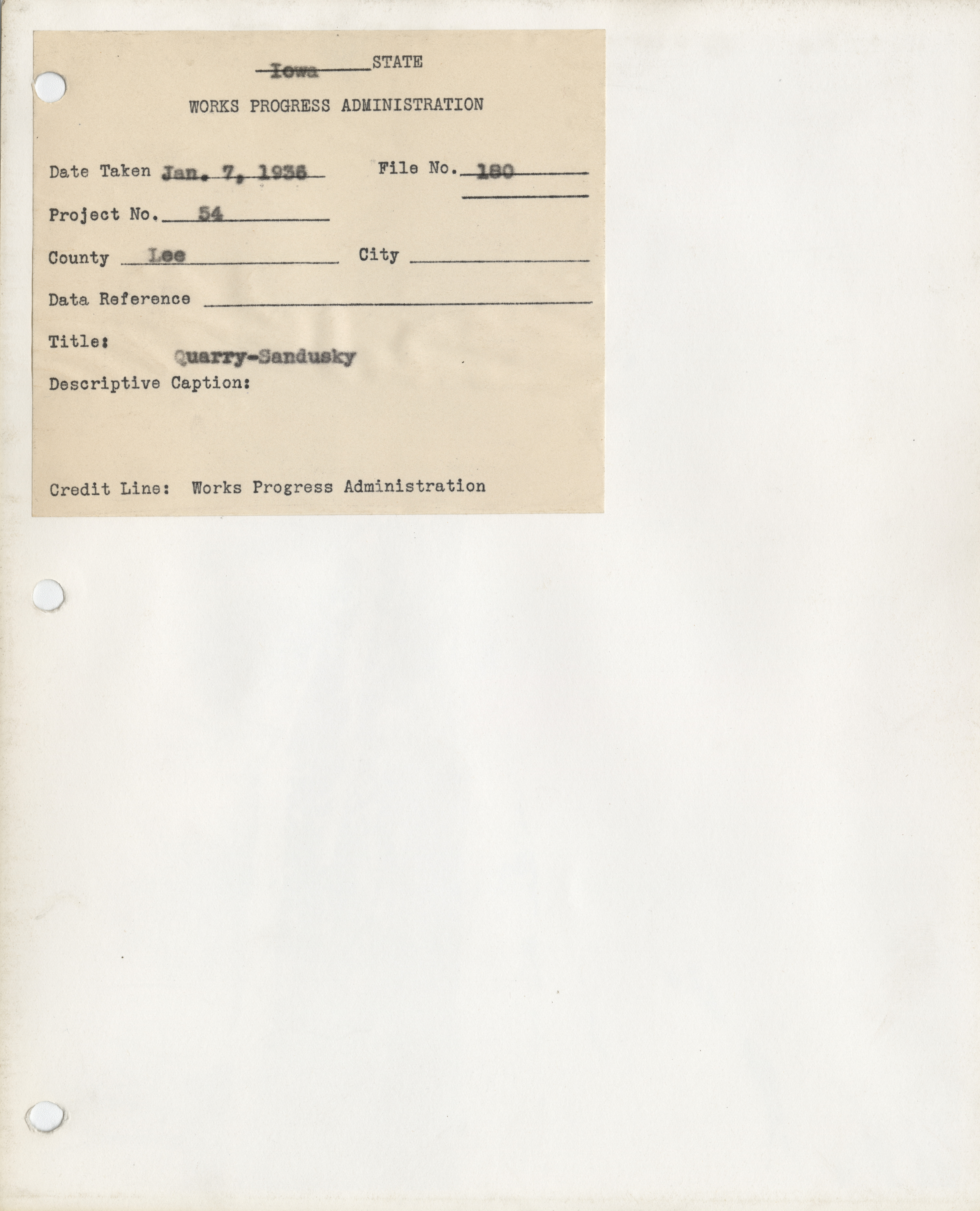 - "Photograph of people working at Sandusky Quarry in Lee County", Work Projects Administration (Iowa) Photographs, Iowa State University Library Digital Collections