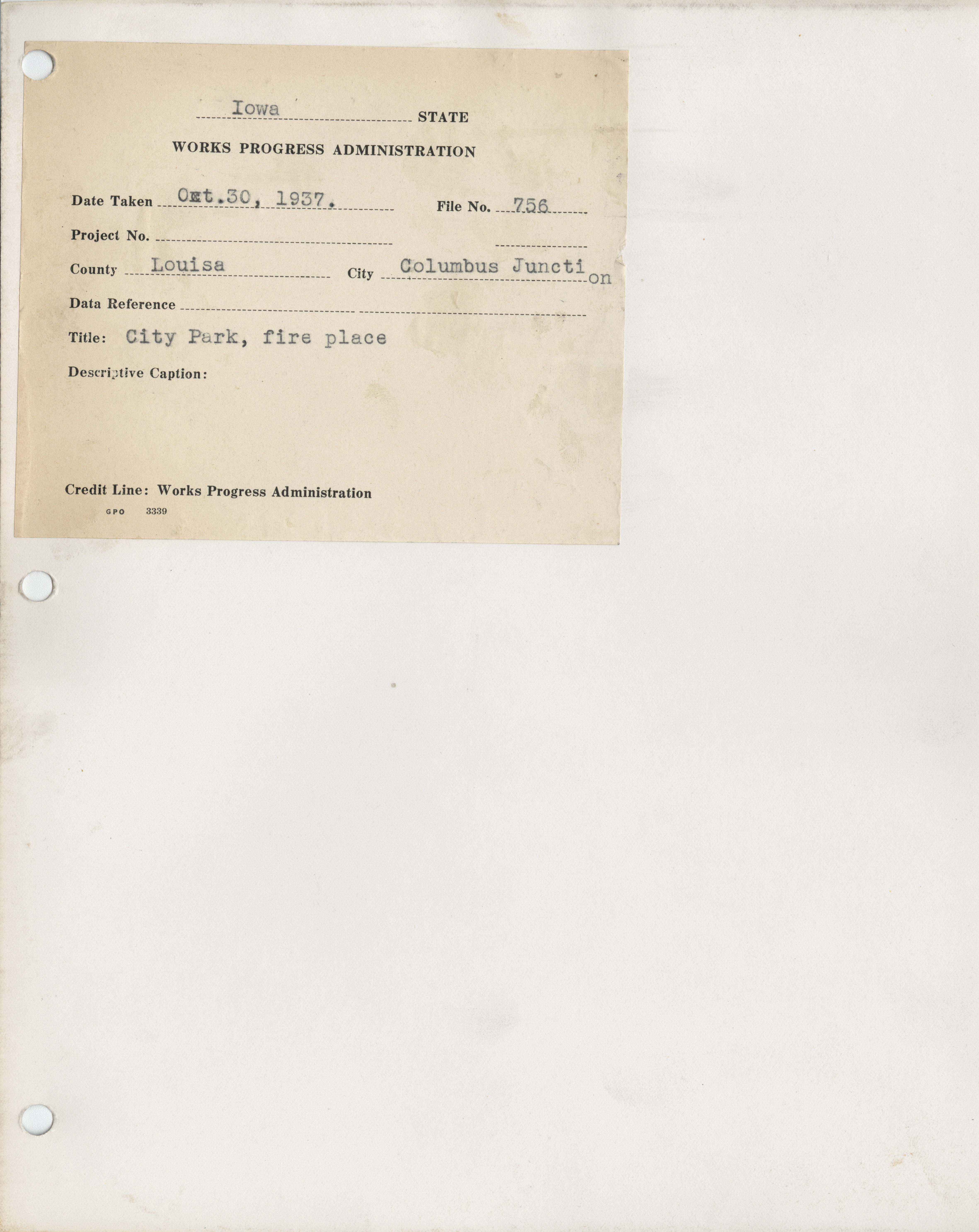- "Photograph of a fireplace at a city park in Columbus Junction", Work Projects Administration (Iowa) Photographs, Iowa State University Library Digital Collections
