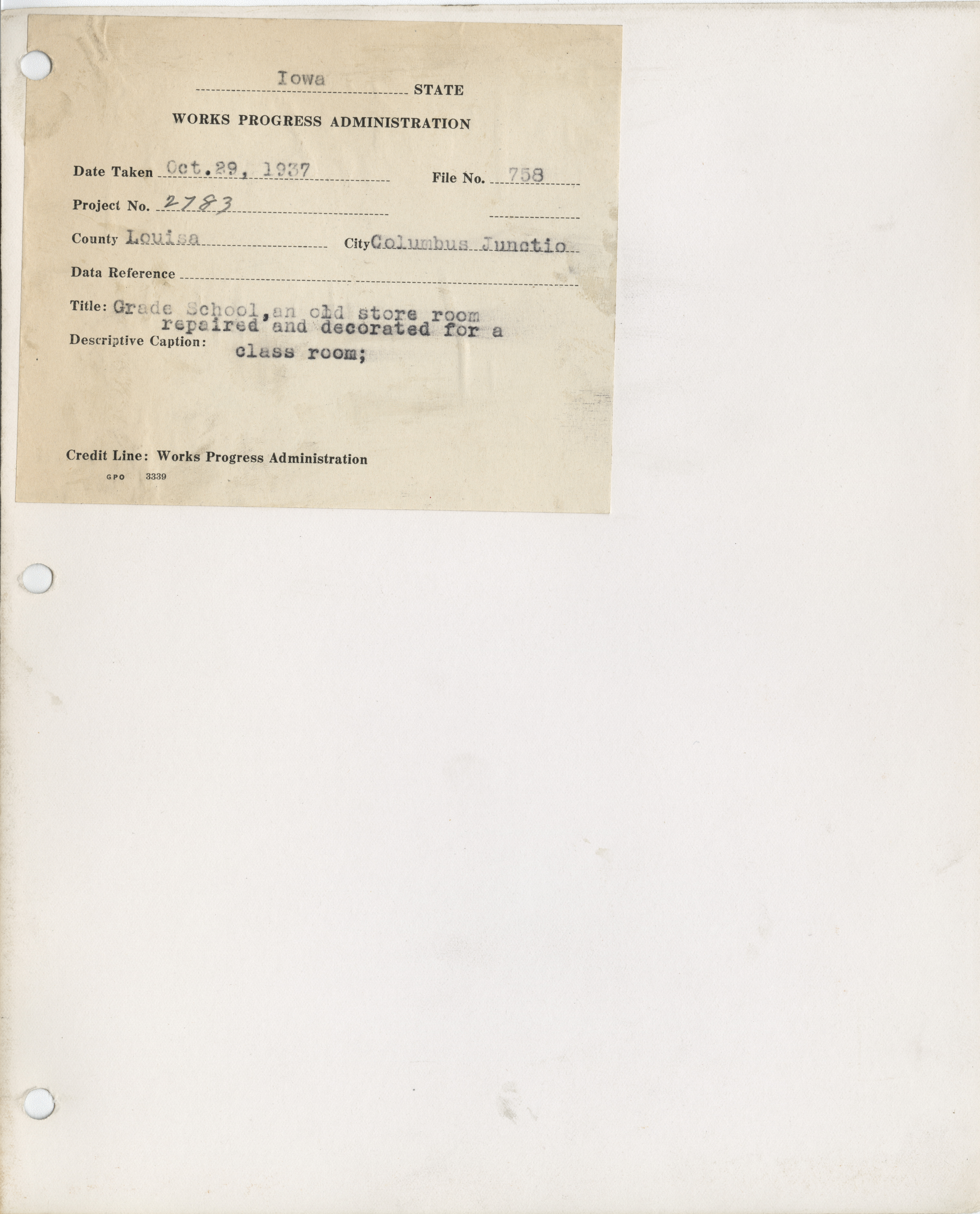 - District 2. Louisa County. Columbus Junction. Grade School Improvements. Project 2783. (2 b/w photographs), 1937
