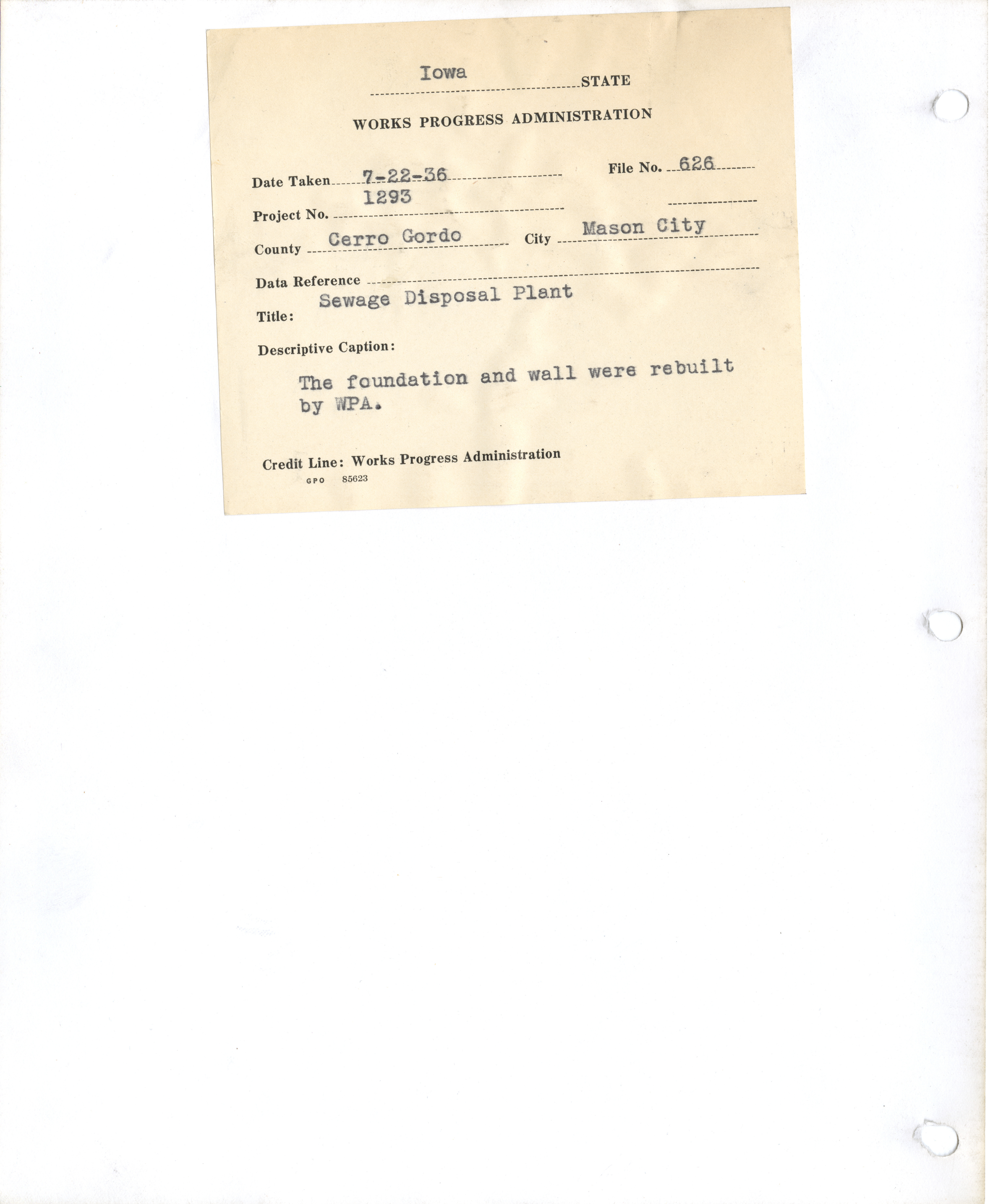 - "Photograph of a sewage disposal plant in Mason City", Work Projects Administration (Iowa) Photographs, Iowa State University Library Digital Collections