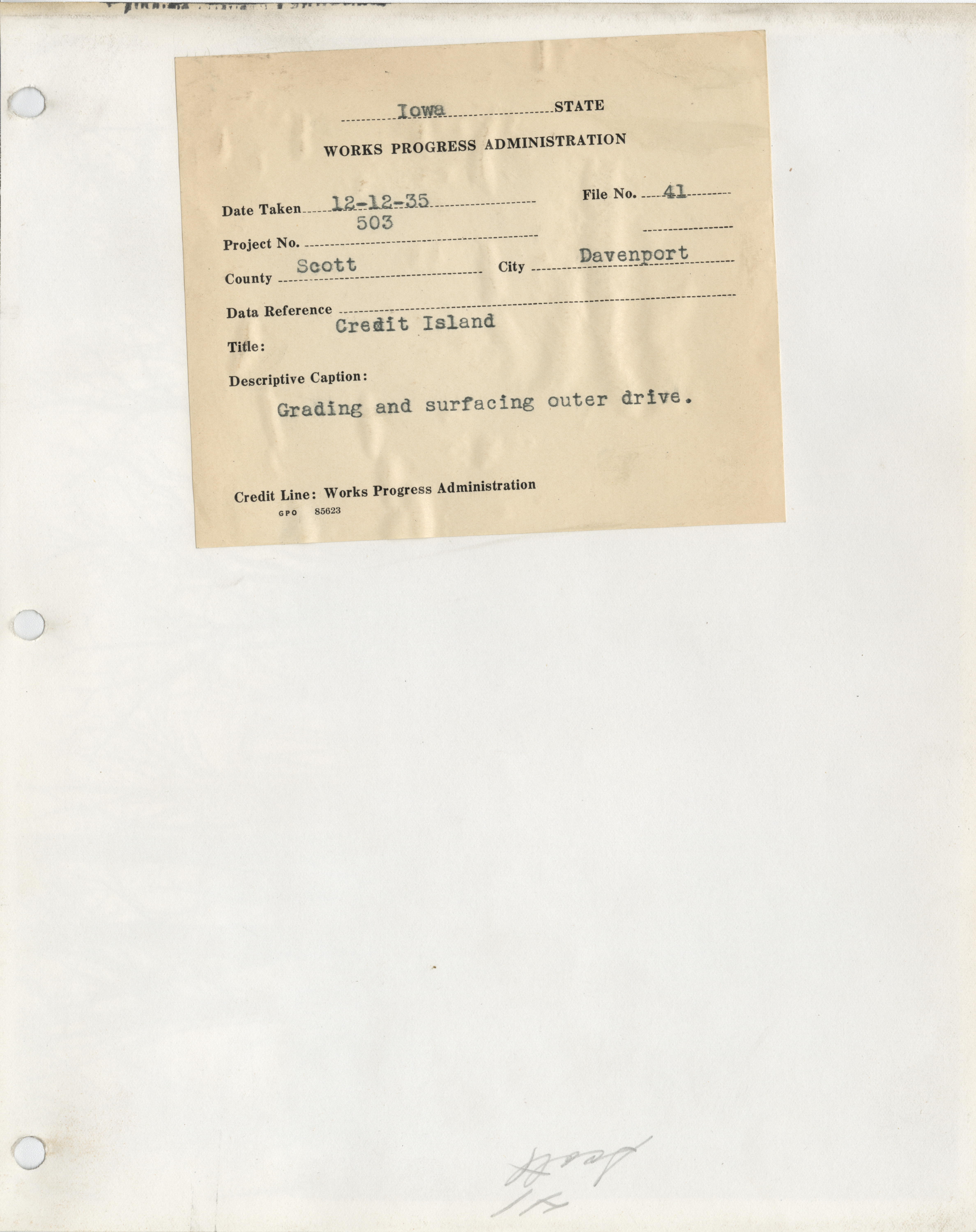 - "Photograph of grading and surfacing a road on Credit Island in Davenport", Work Projects Administration (Iowa) Photographs, Iowa State University Library Digital Collections