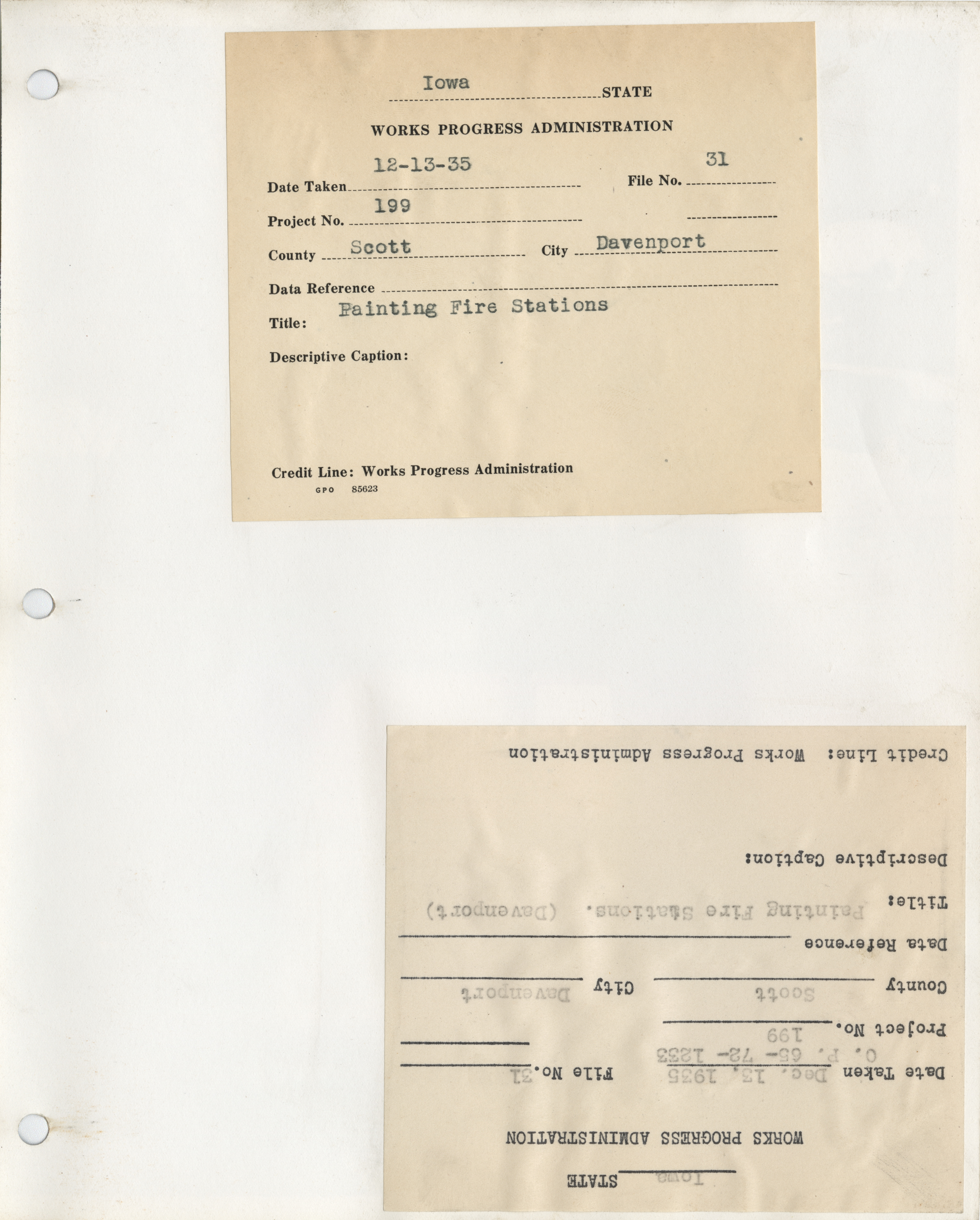 - District 2. Scott County. Davenport. Painting Fire Stations. Project 199. (3 b/w photographs), 1935