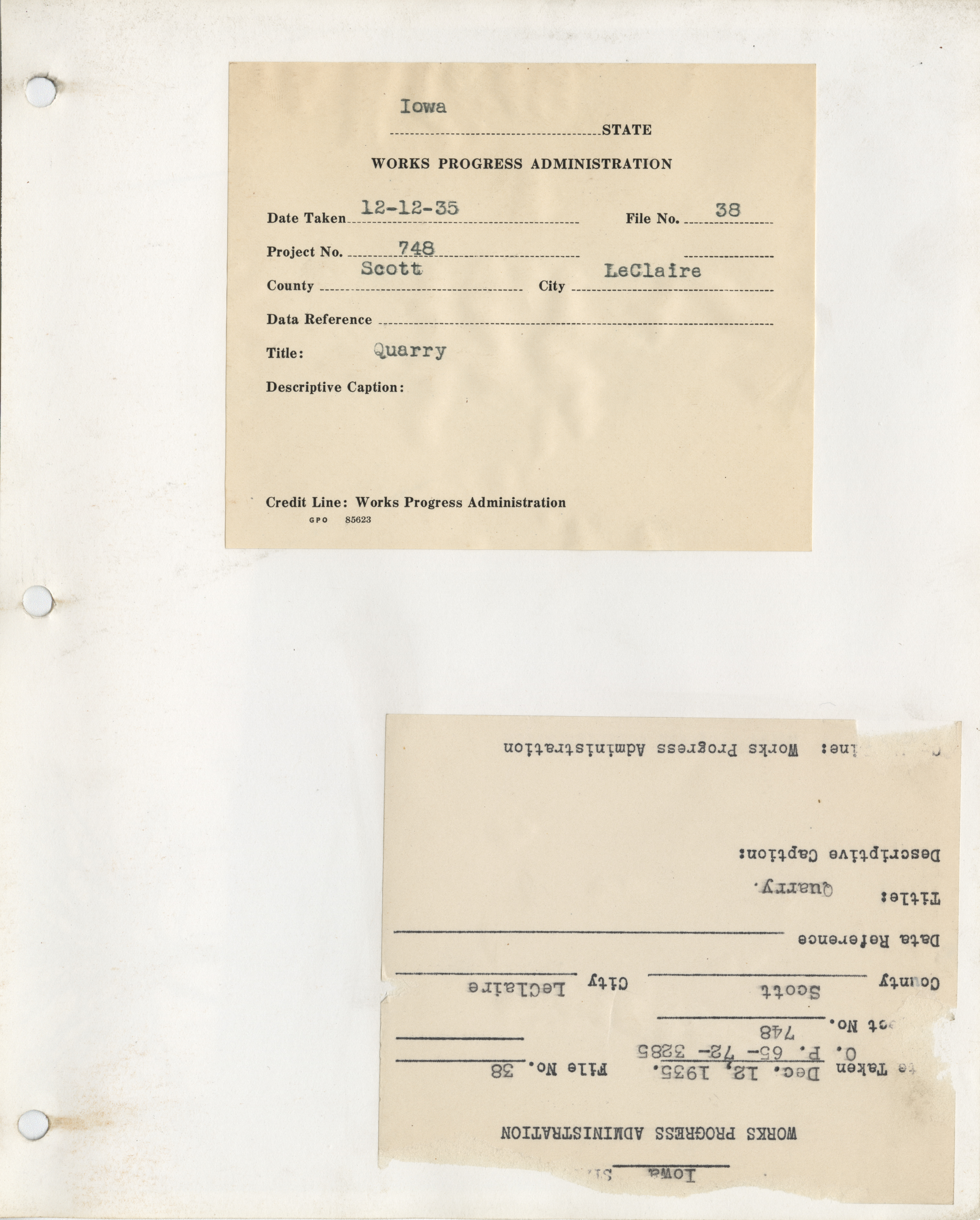- "Photograph of people working at a quarry in LeClaire", Work Projects Administration (Iowa) Photographs, Iowa State University Library Digital Collections