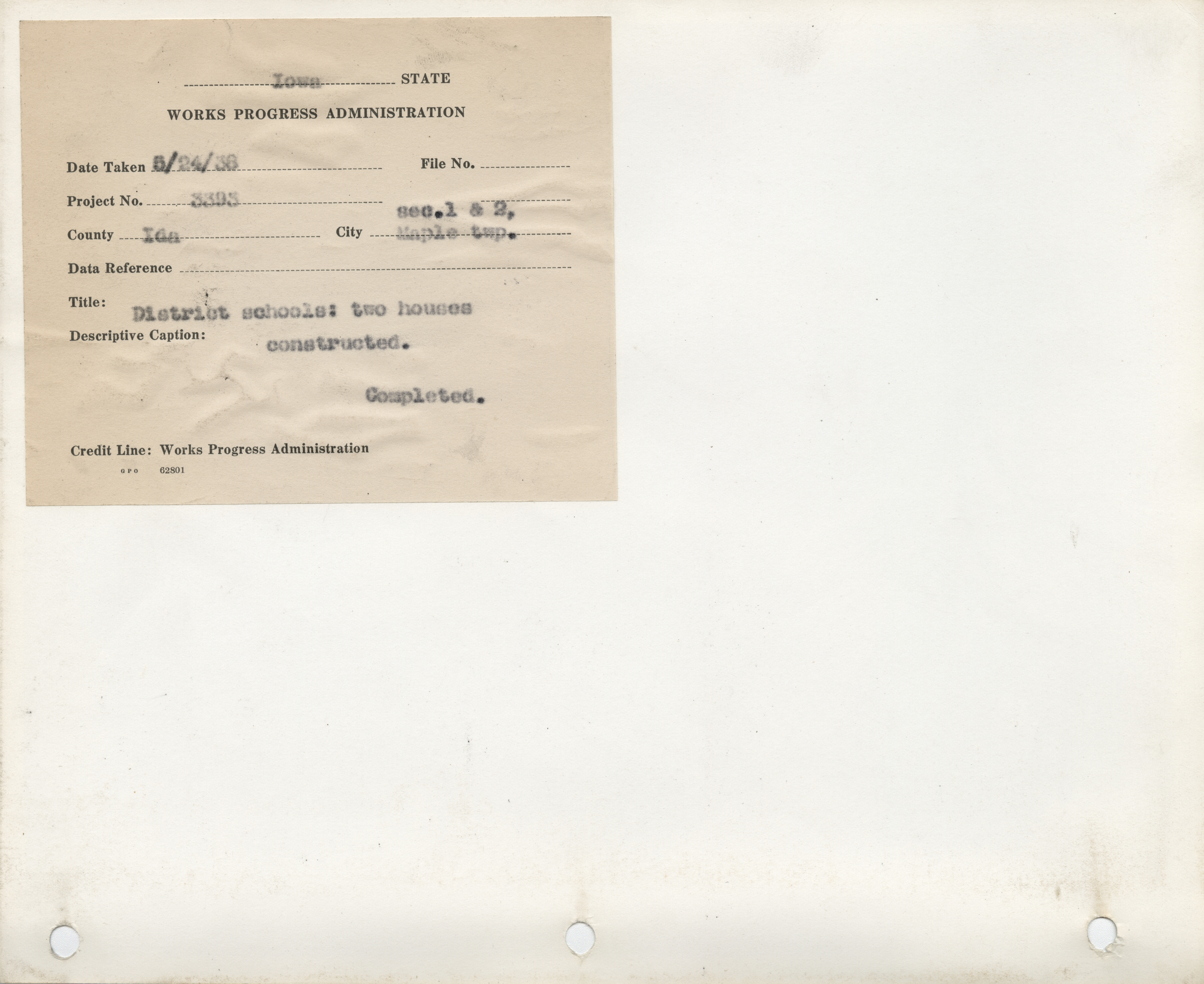 - District 3. Ida County. District Schools. Project 3393. (2 b/w photographs), 1938