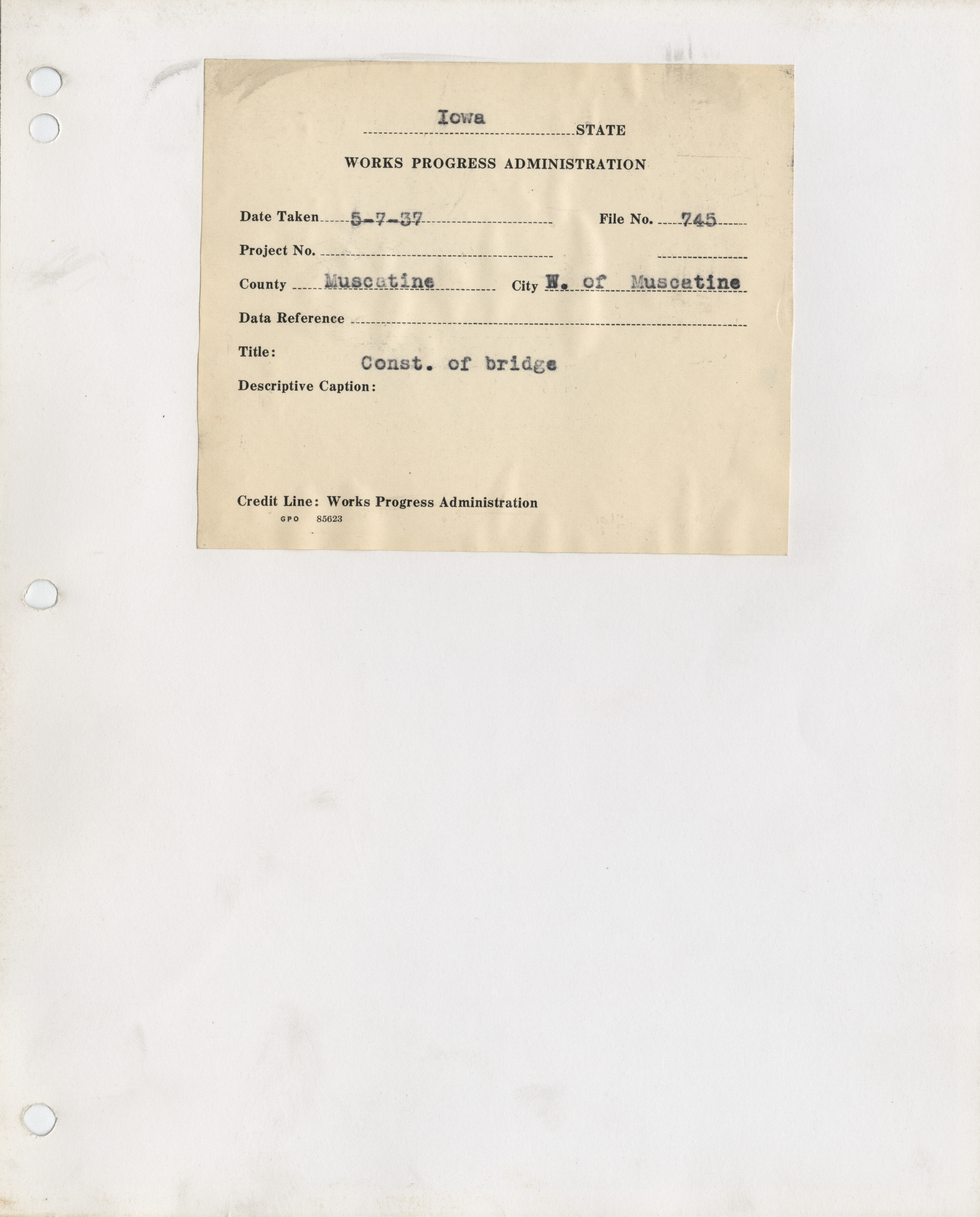 - "Photograph of the construction of a bridge in Muscatine County", Work Projects Administration (Iowa) Photographs, Iowa State University Library Digital Collections
