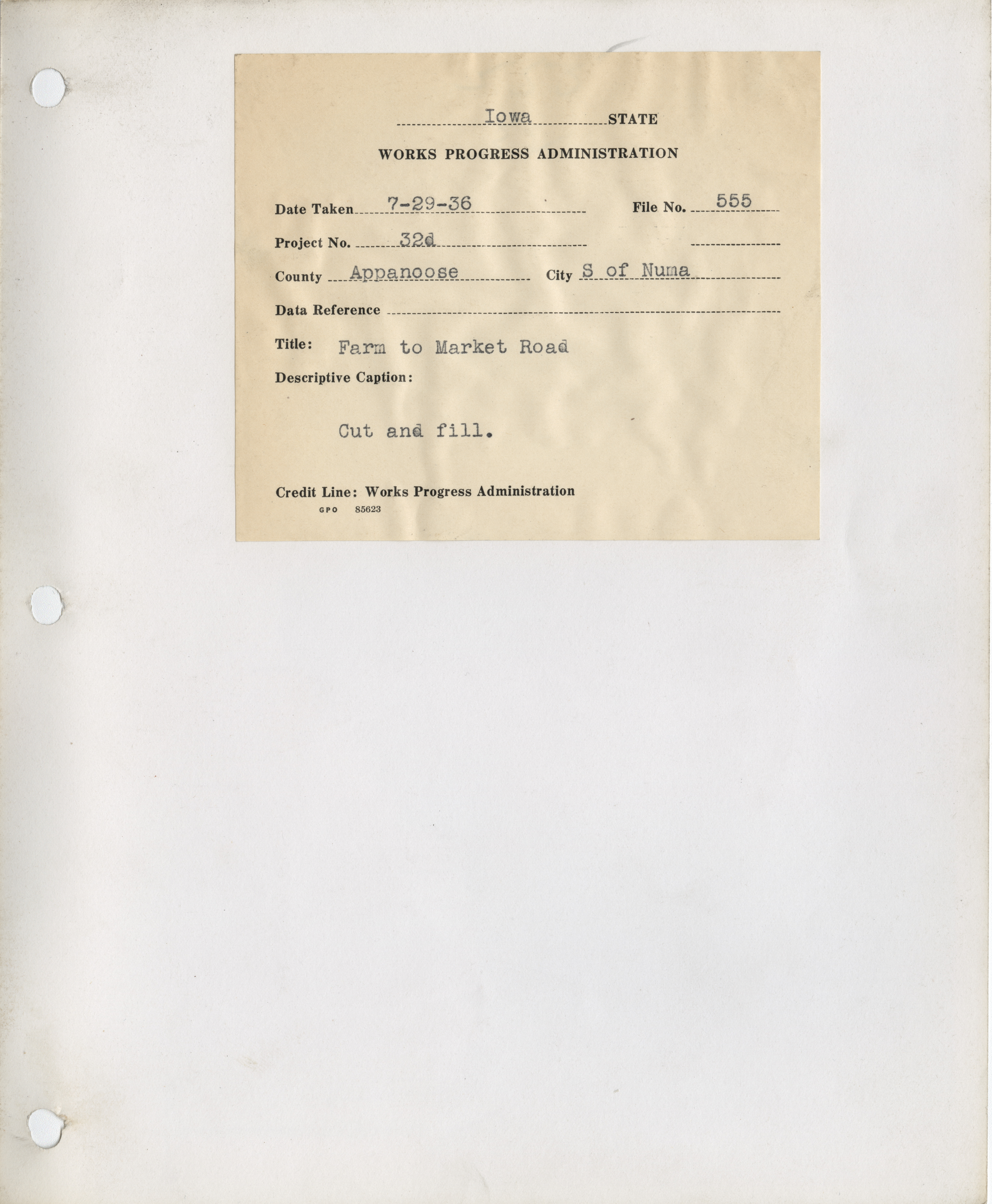 - "Photograph of cut and fill of a farm to market road in Appanoose County", Work Projects Administration (Iowa) Photographs, Iowa State University Library Digital Collections