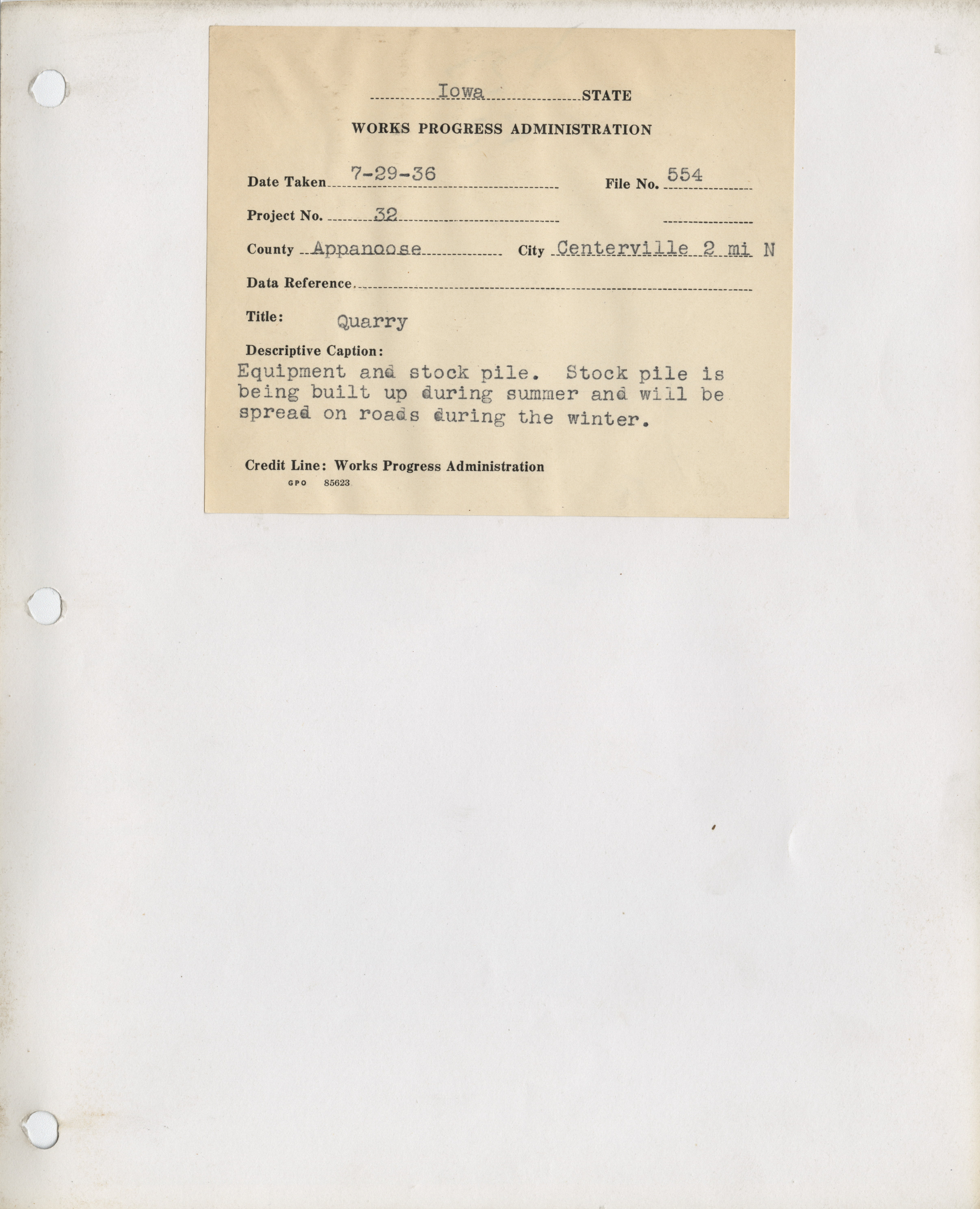 - "Photograph of people working to stockpile gravel for winter to spread on farm to market roads in Appanoose County", Work Projects Administration (Iowa) Photographs, Iowa State University Library Digital Collections