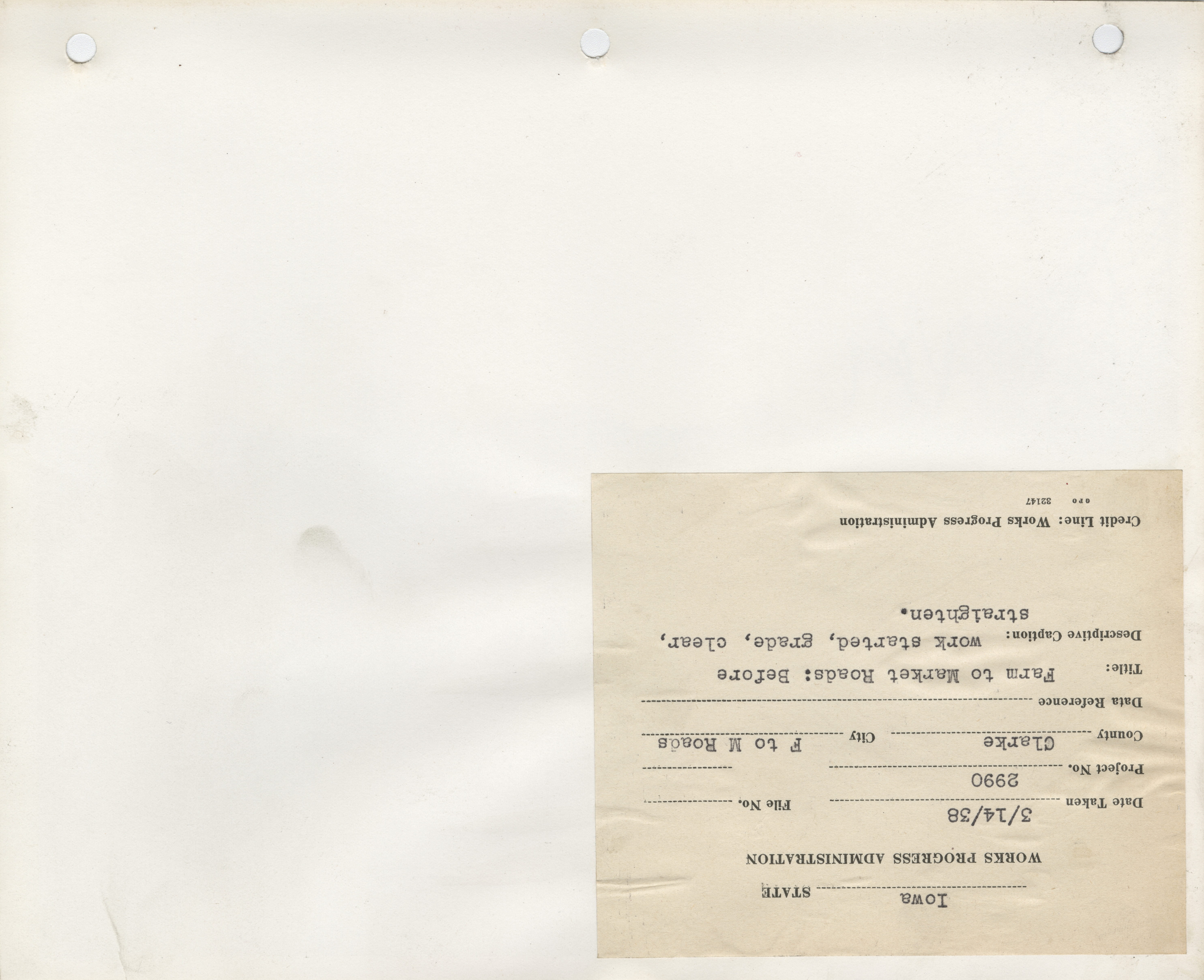 - "Photograph of a farm to market road in Clarke County", Work Projects Administration (Iowa) Photographs, Iowa State University Library Digital Collections