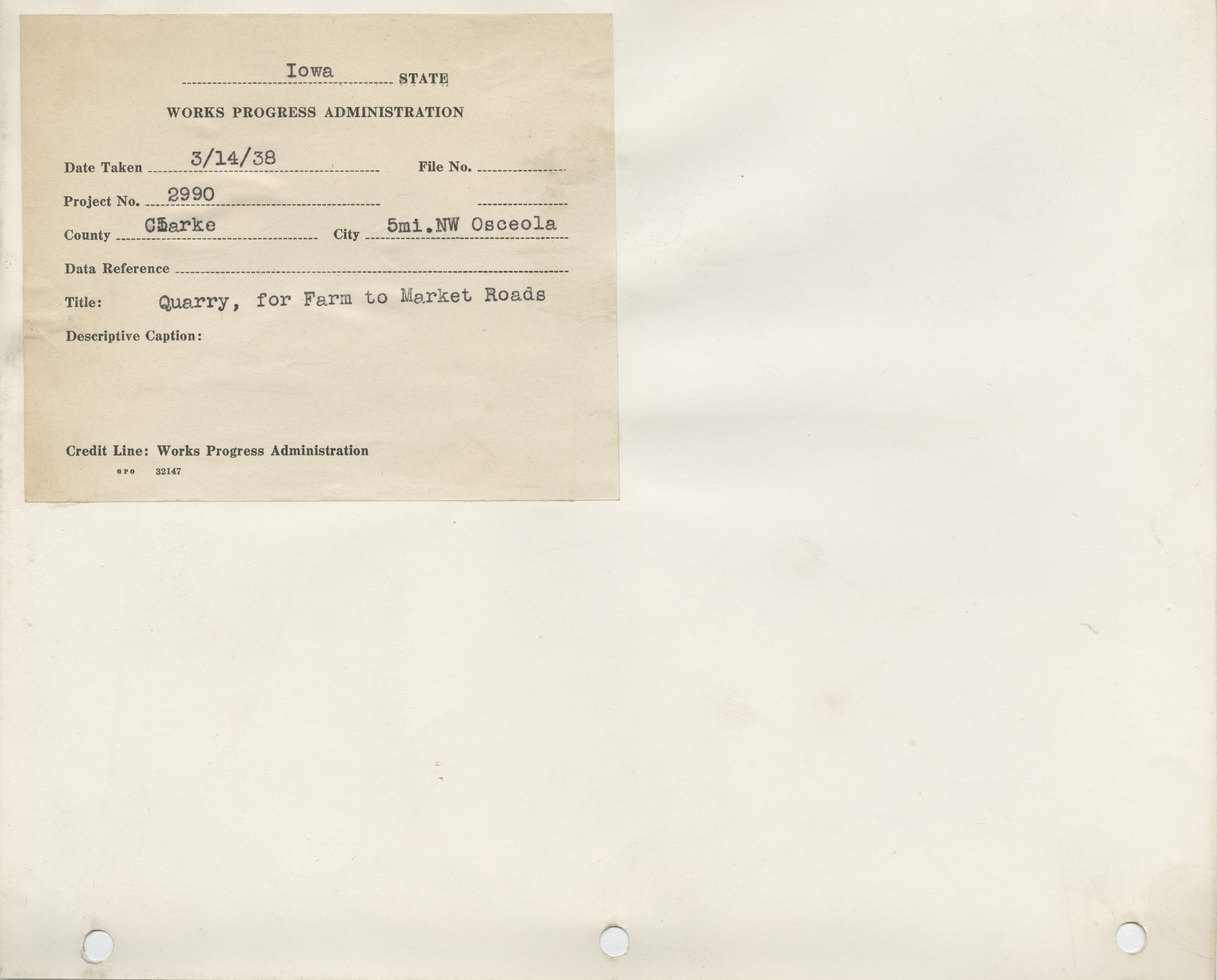 - "Photograph of a quarry in Clarke County", Work Projects Administration (Iowa) Photographs, Iowa State University Library Digital Collections
