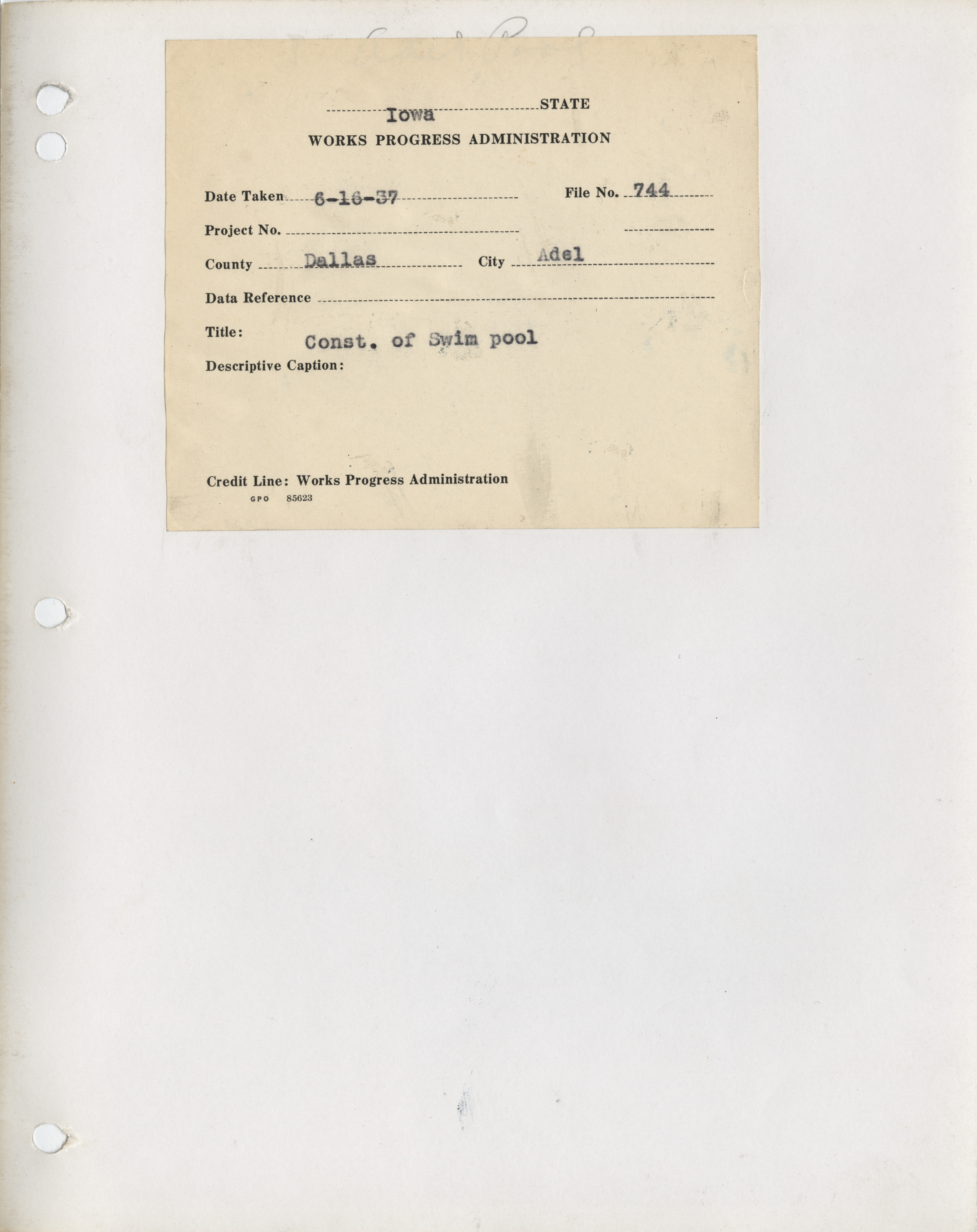 - "Photograph of the construction of a swimming pool in Adel", Work Projects Administration (Iowa) Photographs, Iowa State University Library Digital Collections