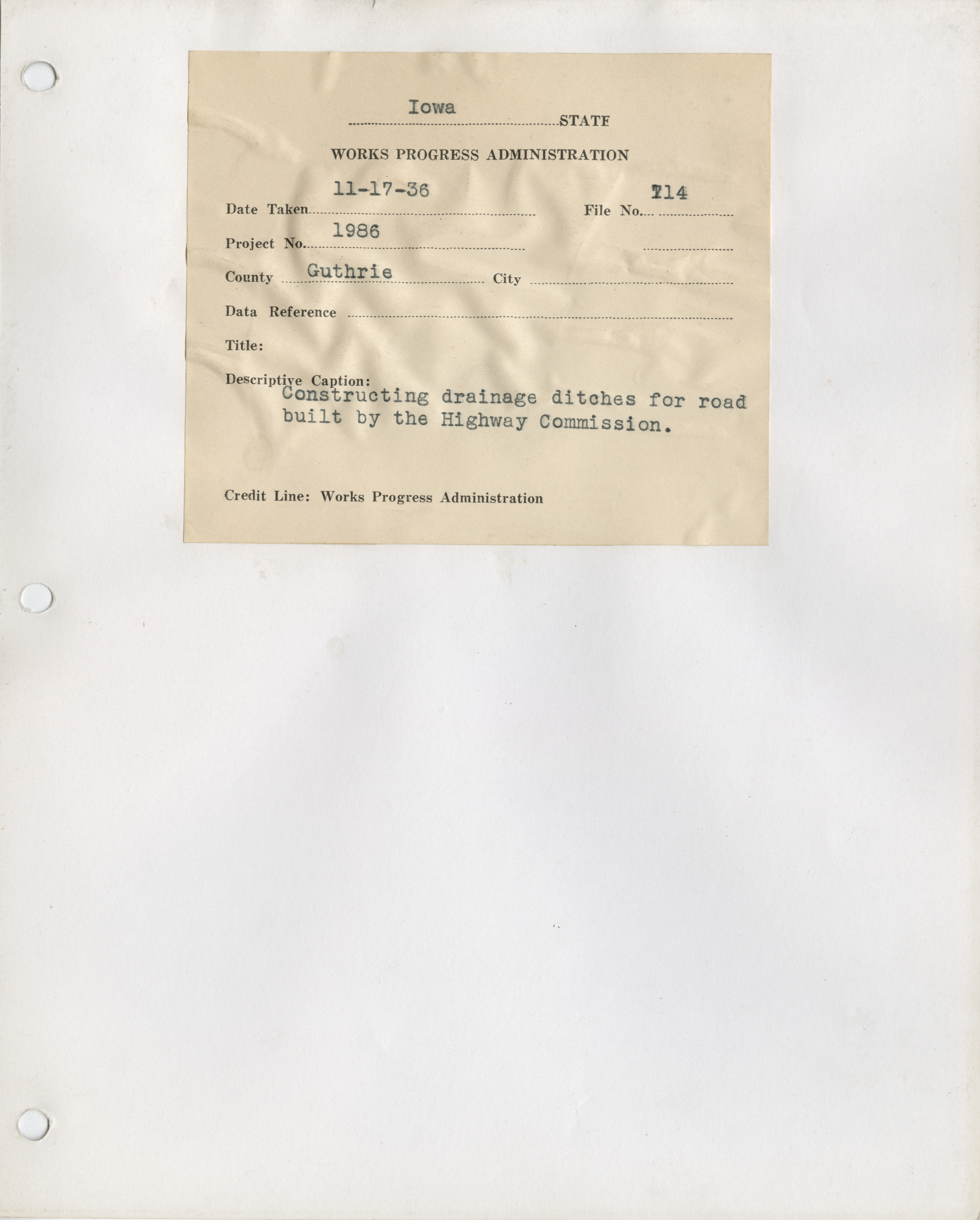 - "Photograph of people working on a ditch in Guthrie County", Work Projects Administration (Iowa) Photographs, Iowa State University Library Digital Collections