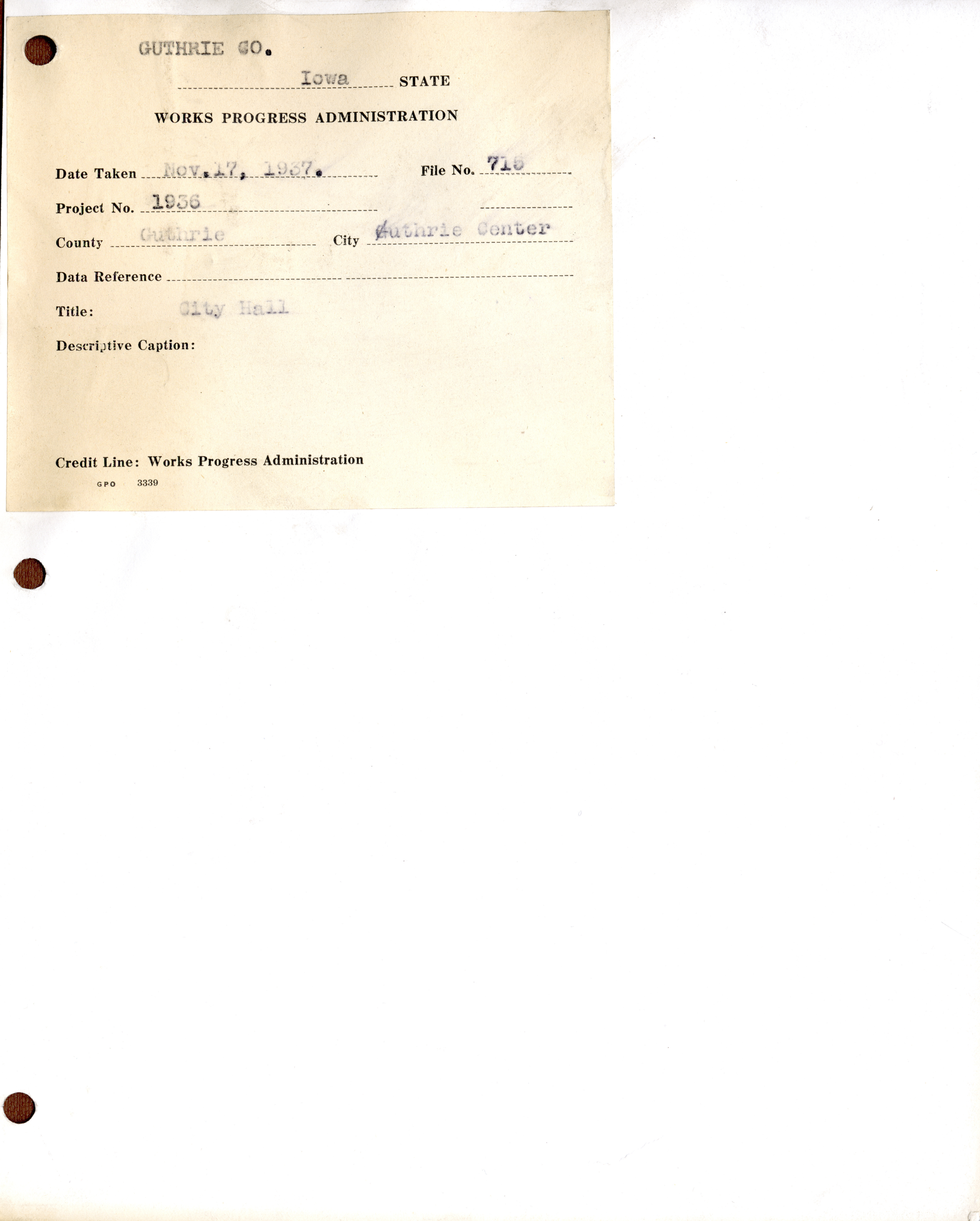 - "Photograph of city hall in Guthrie Center", Work Projects Administration (Iowa) Photographs, Iowa State University Library Digital Collections