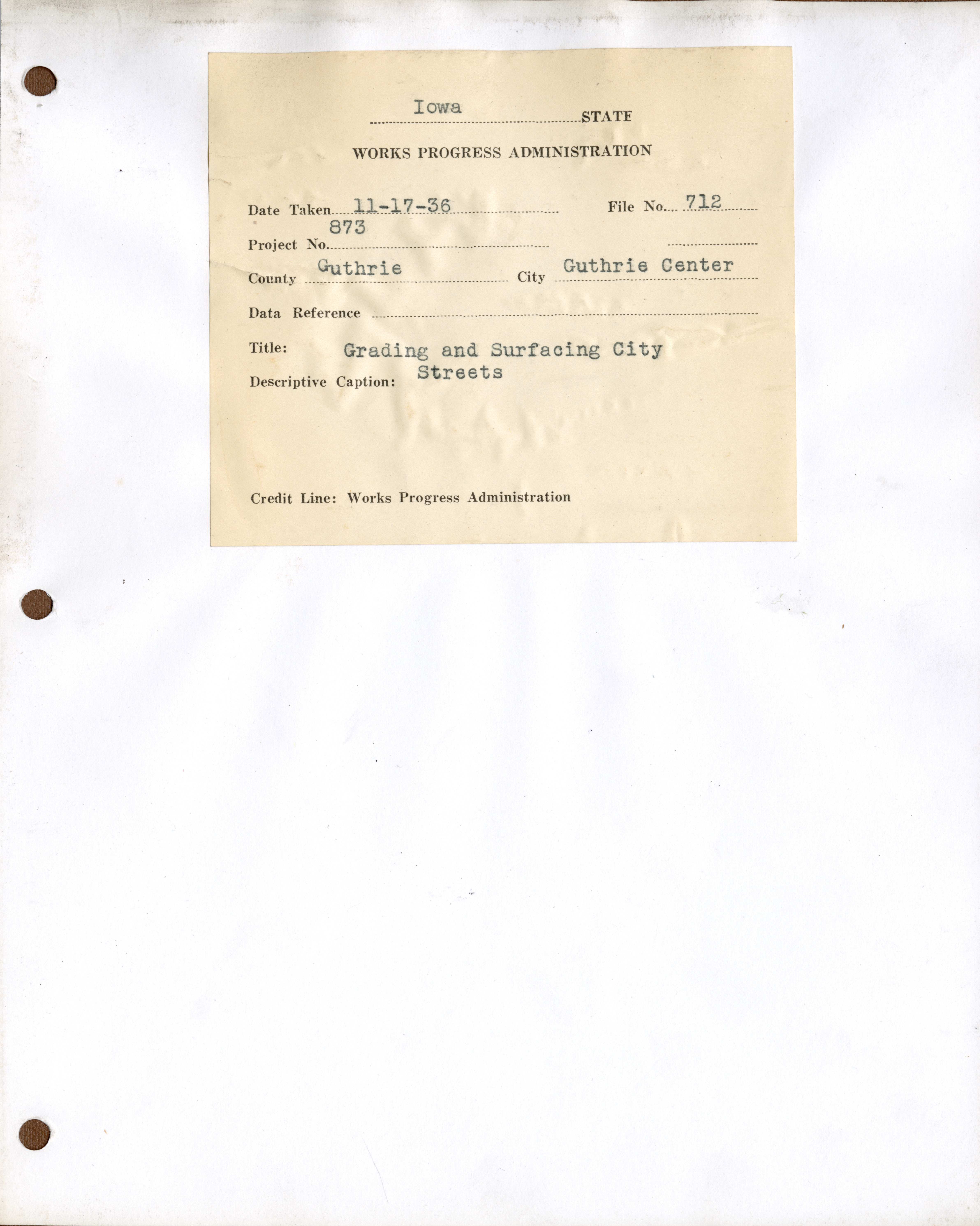- "Photograph of grading and surfacing streets in Guthrie Center", Work Projects Administration (Iowa) Photographs, Iowa State University Library Digital Collections