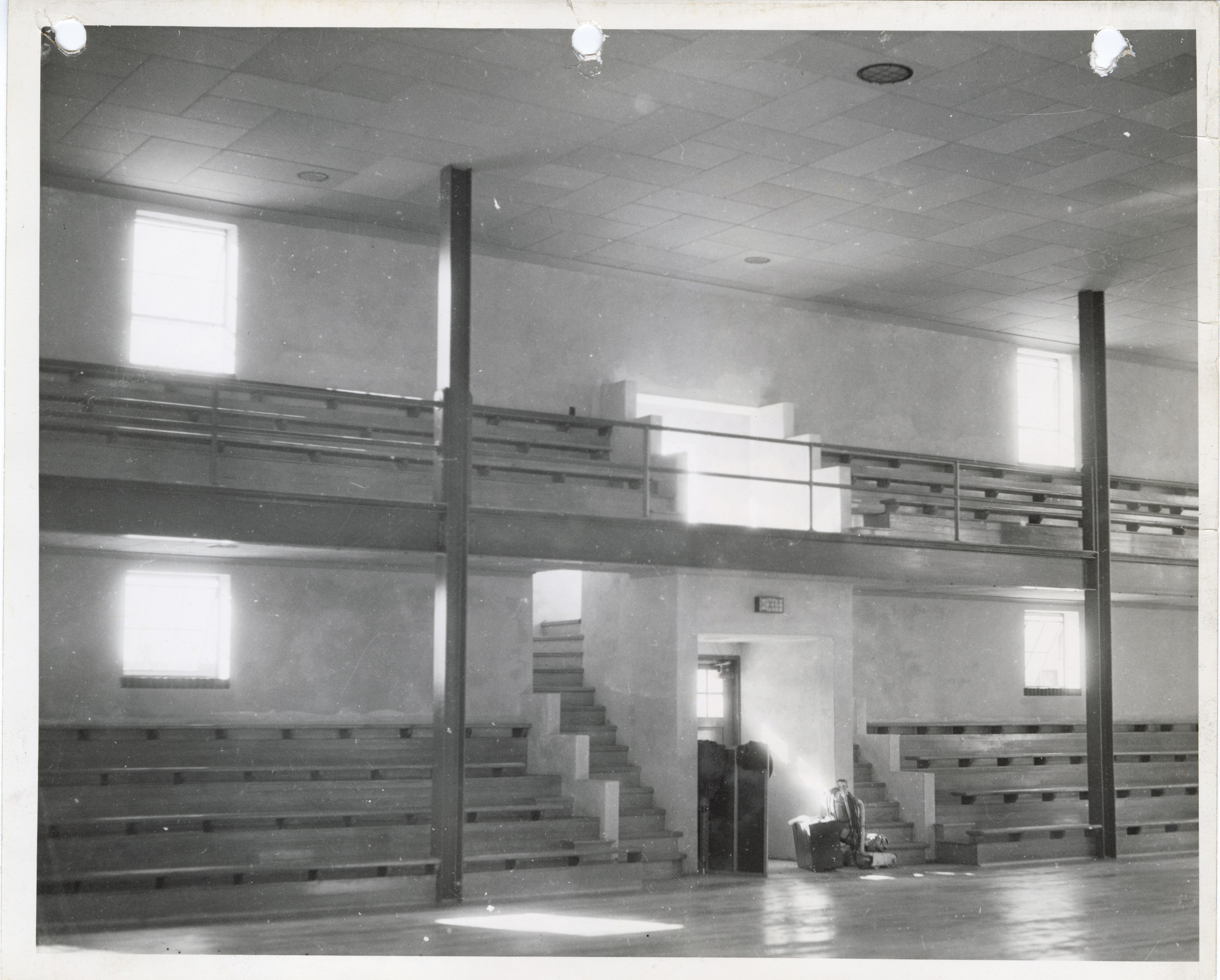 - Photograph of the interior view of the entrance to the high school gym in Panora