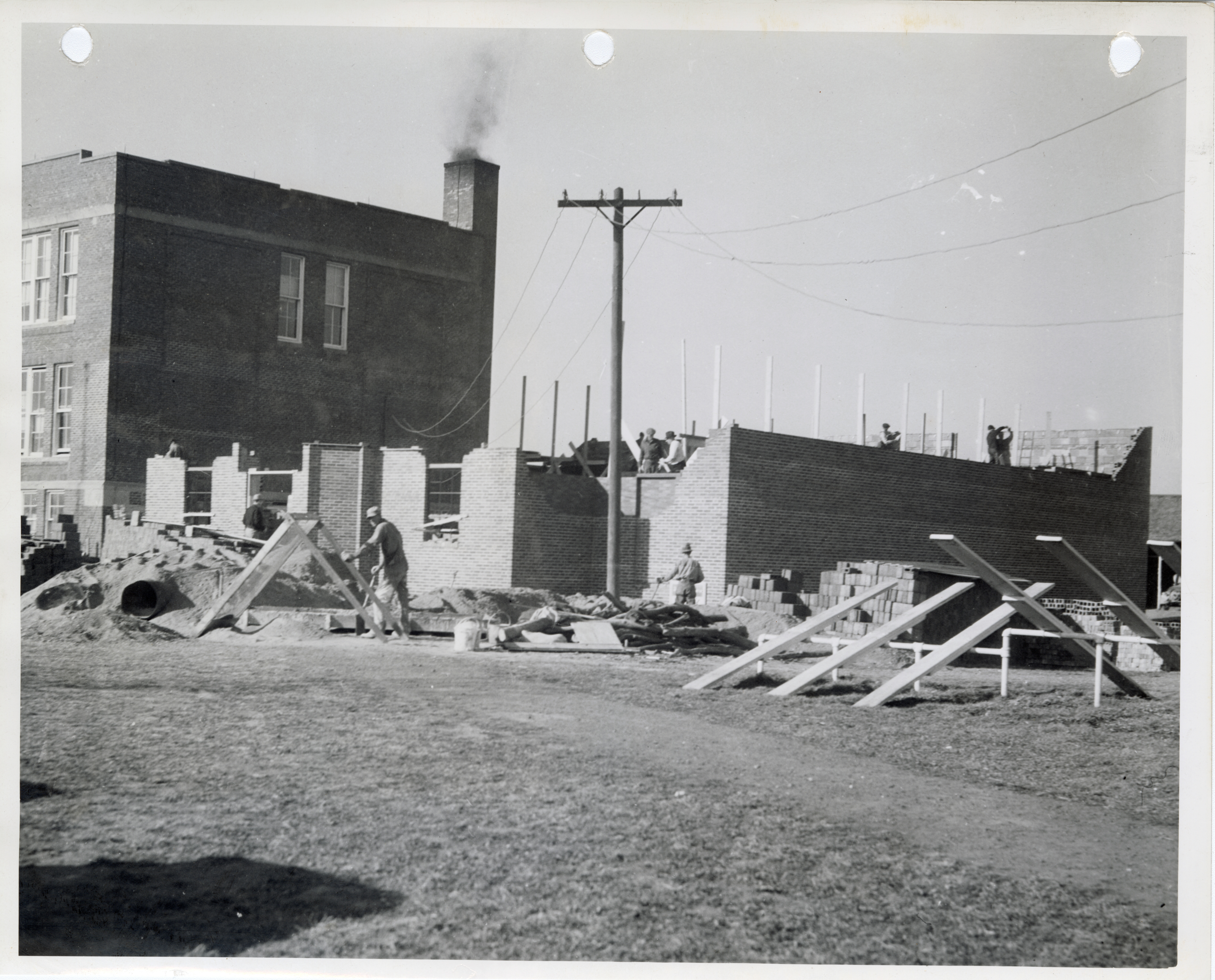 - Photograph of people constructing the high school gym and auditorium in Cedar
