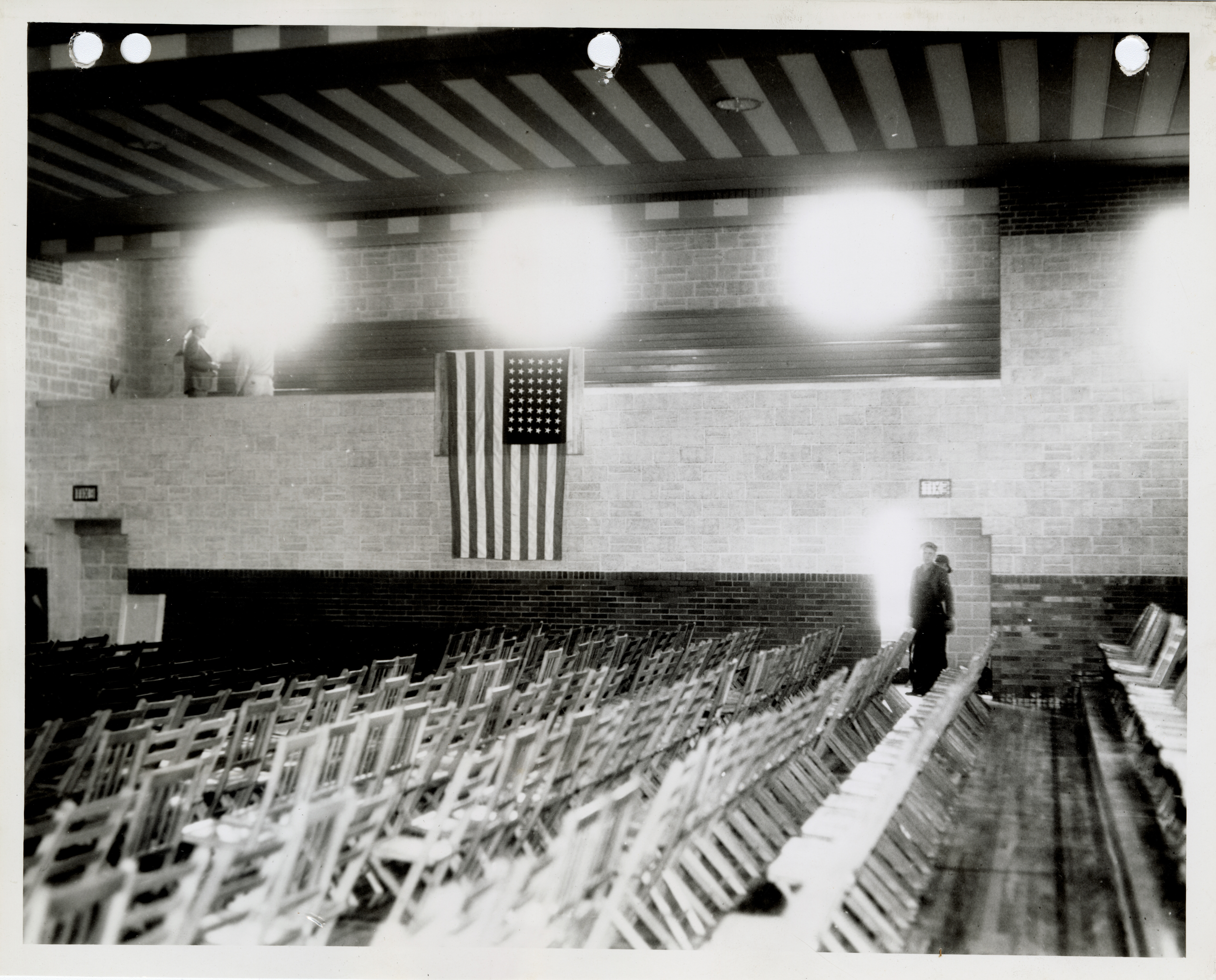 - Photograph of seating at the high school gym and auditorium in Cedar
