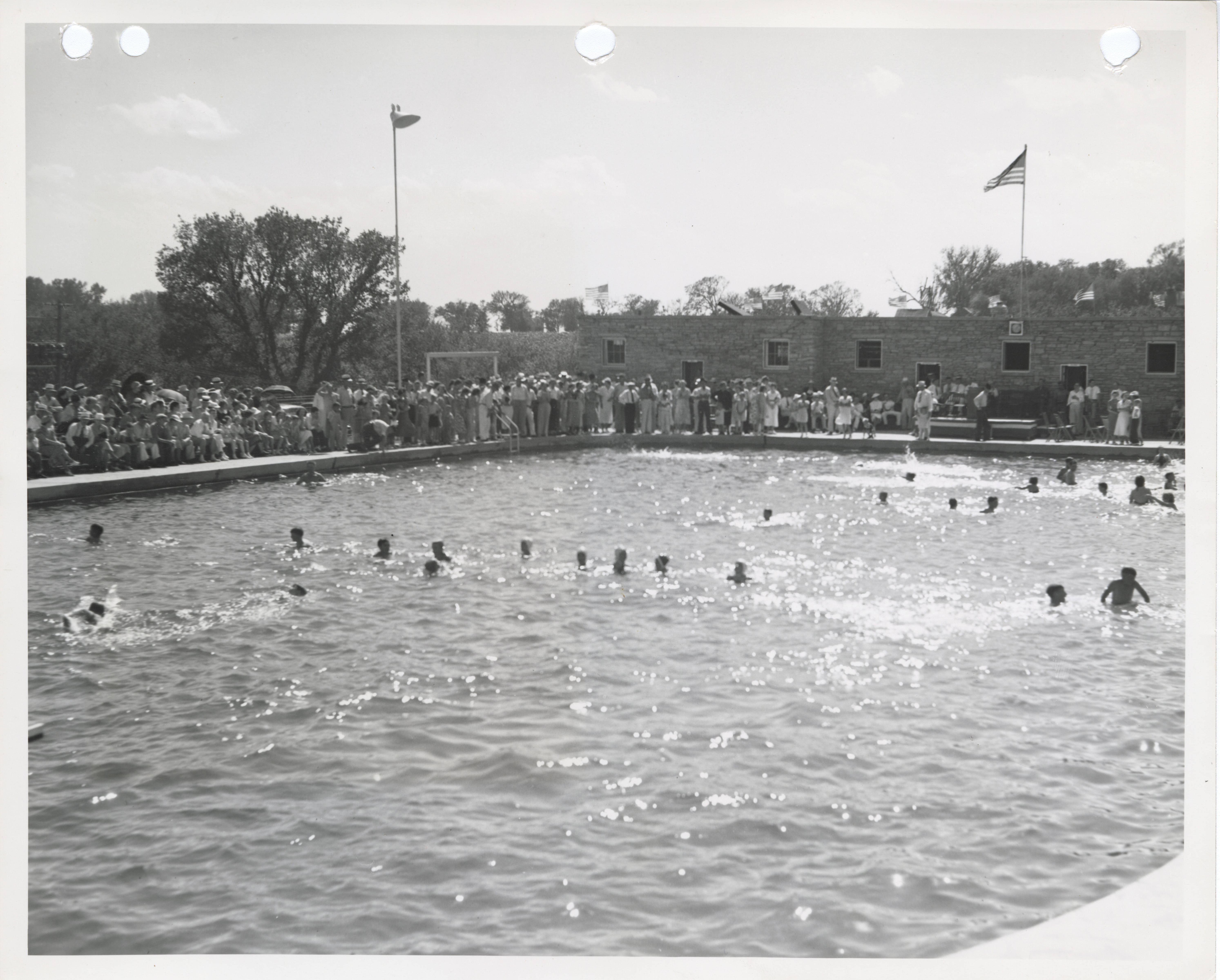 - "Photograph of people at the swimming pool at Edmundson Park in Oskaloosa", Work Projects Administration (Iowa) Photographs, Iowa State University Library Digital Collections