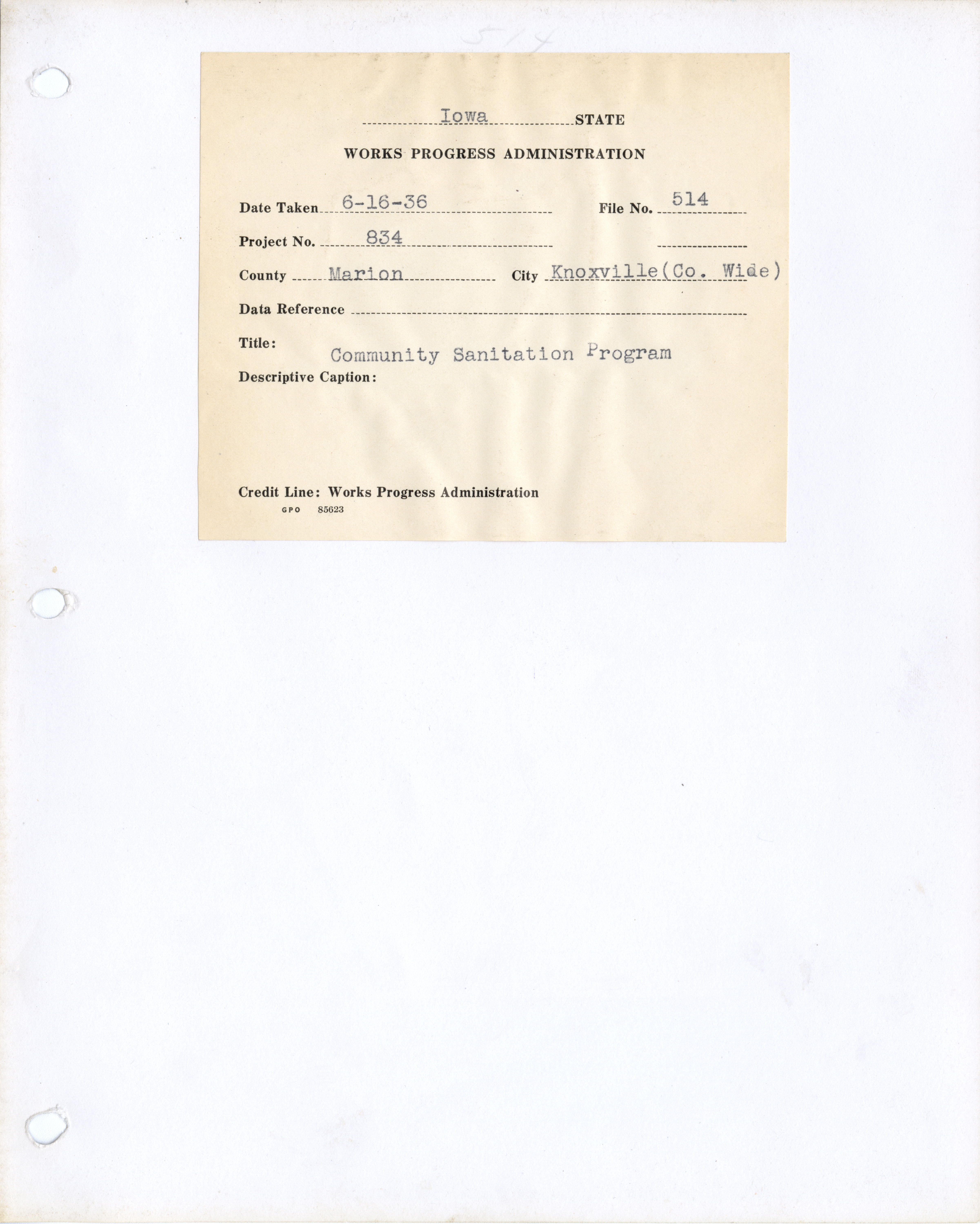 - "Photograph of the community sanitation program in Knoxville", Work Projects Administration (Iowa) Photographs, Iowa State University Library Digital Collections