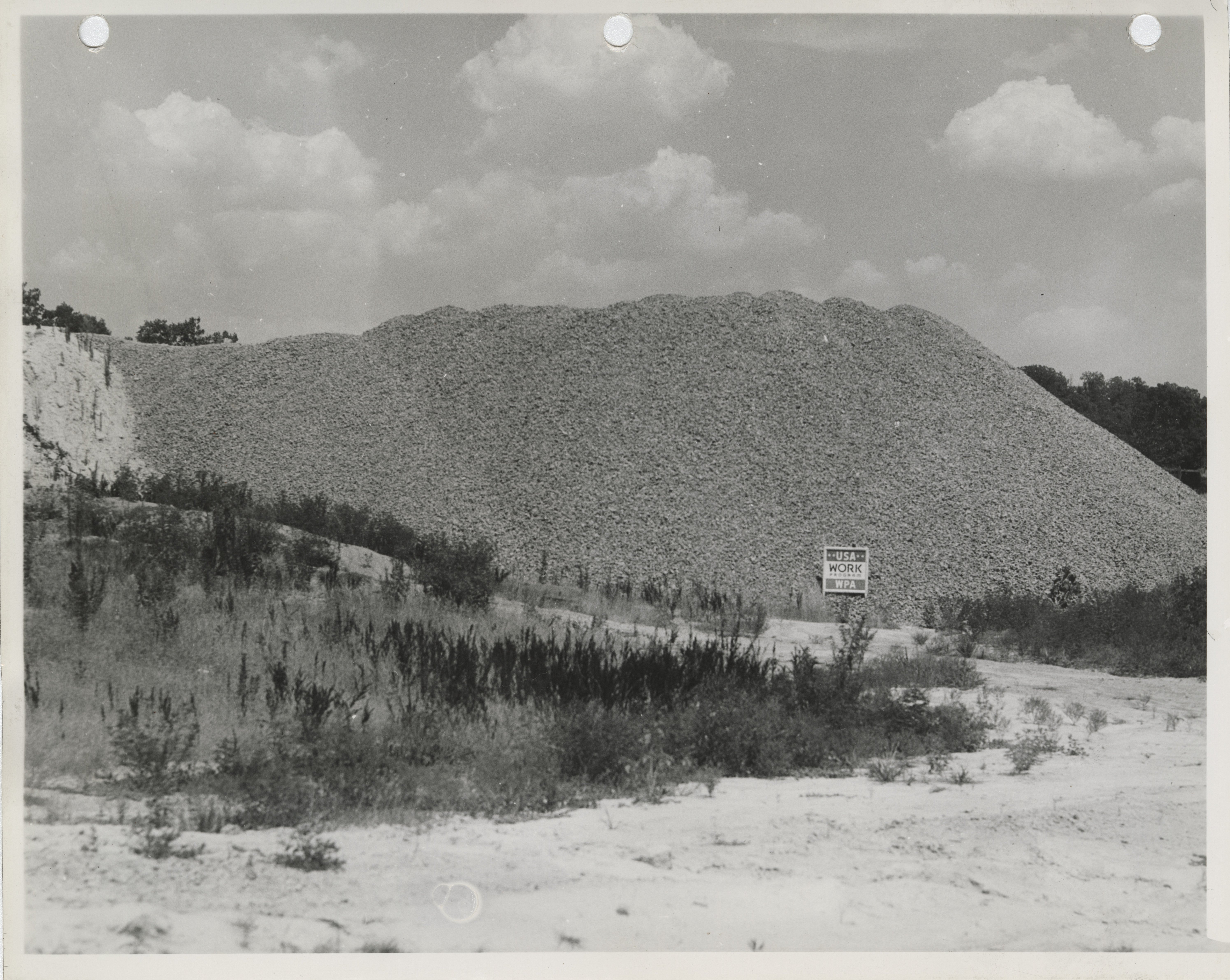 Photograph of a stockpile of crushed rock west of Lovilia Item Info