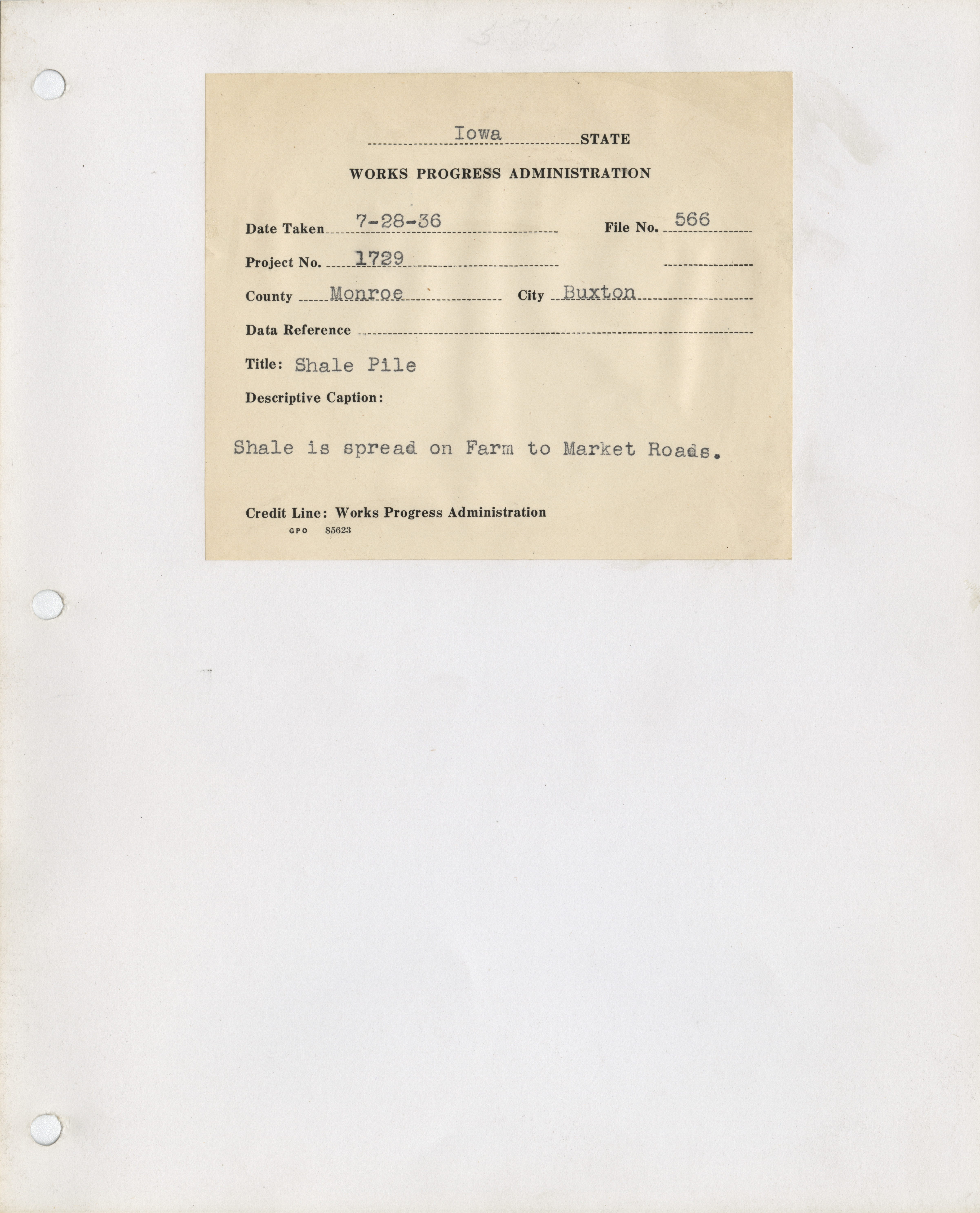 - "Photograph of a shale pile in Buxton", Work Projects Administration (Iowa) Photographs, Iowa State University Library Digital Collections