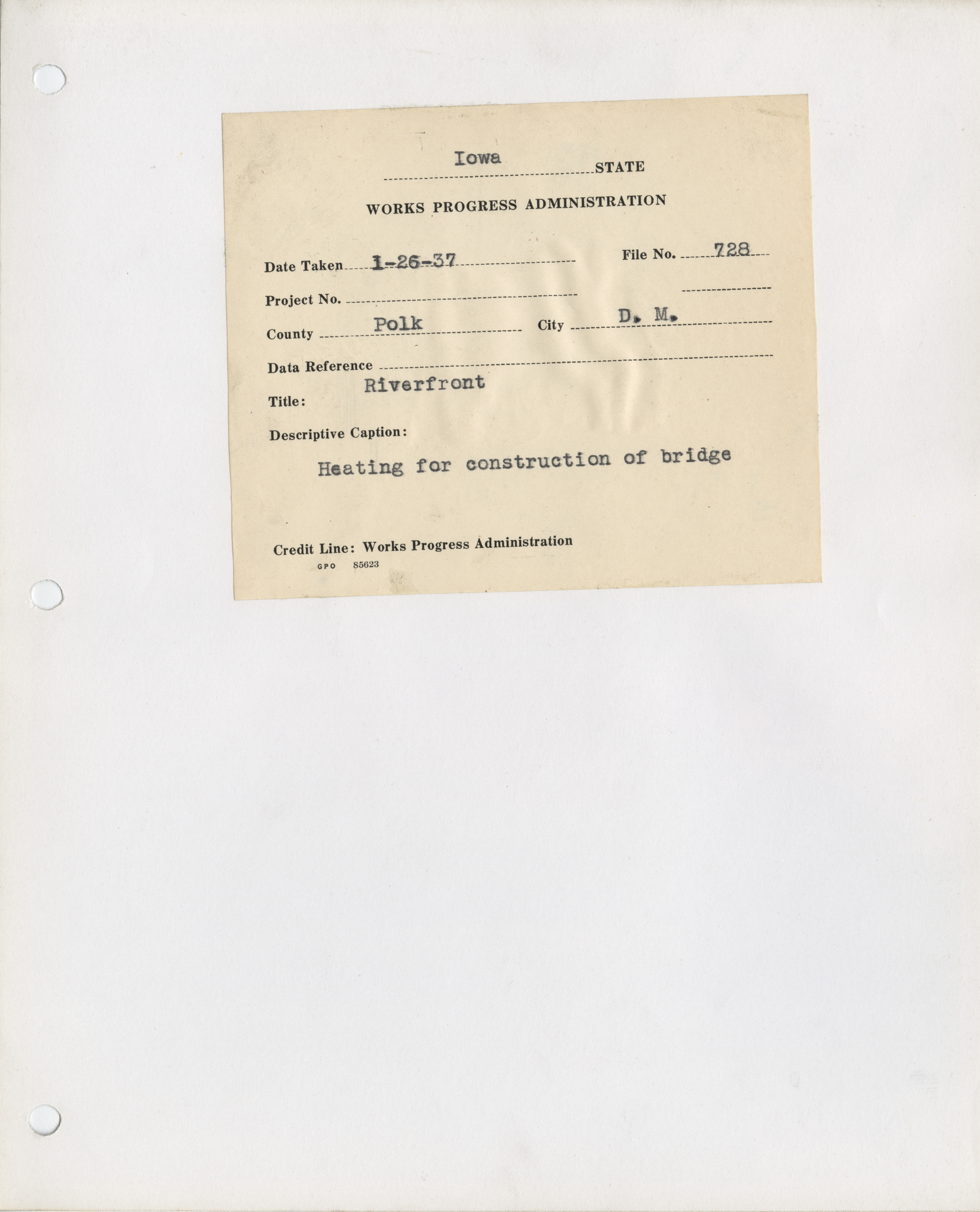- "Photograph of heating for the construction of a bridge in Des Moines", Work Projects Administration (Iowa) Photographs, Iowa State University Library Digital Collections