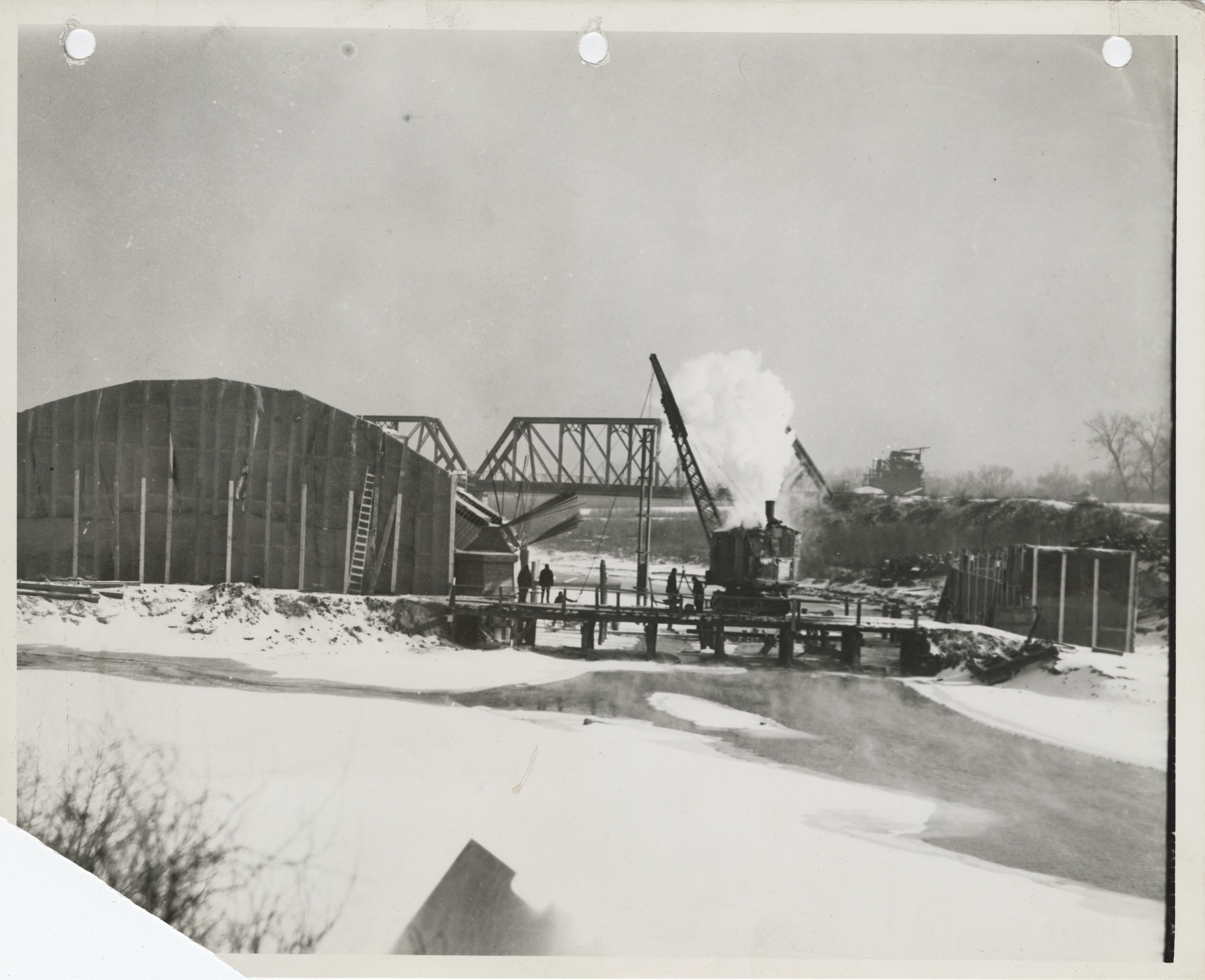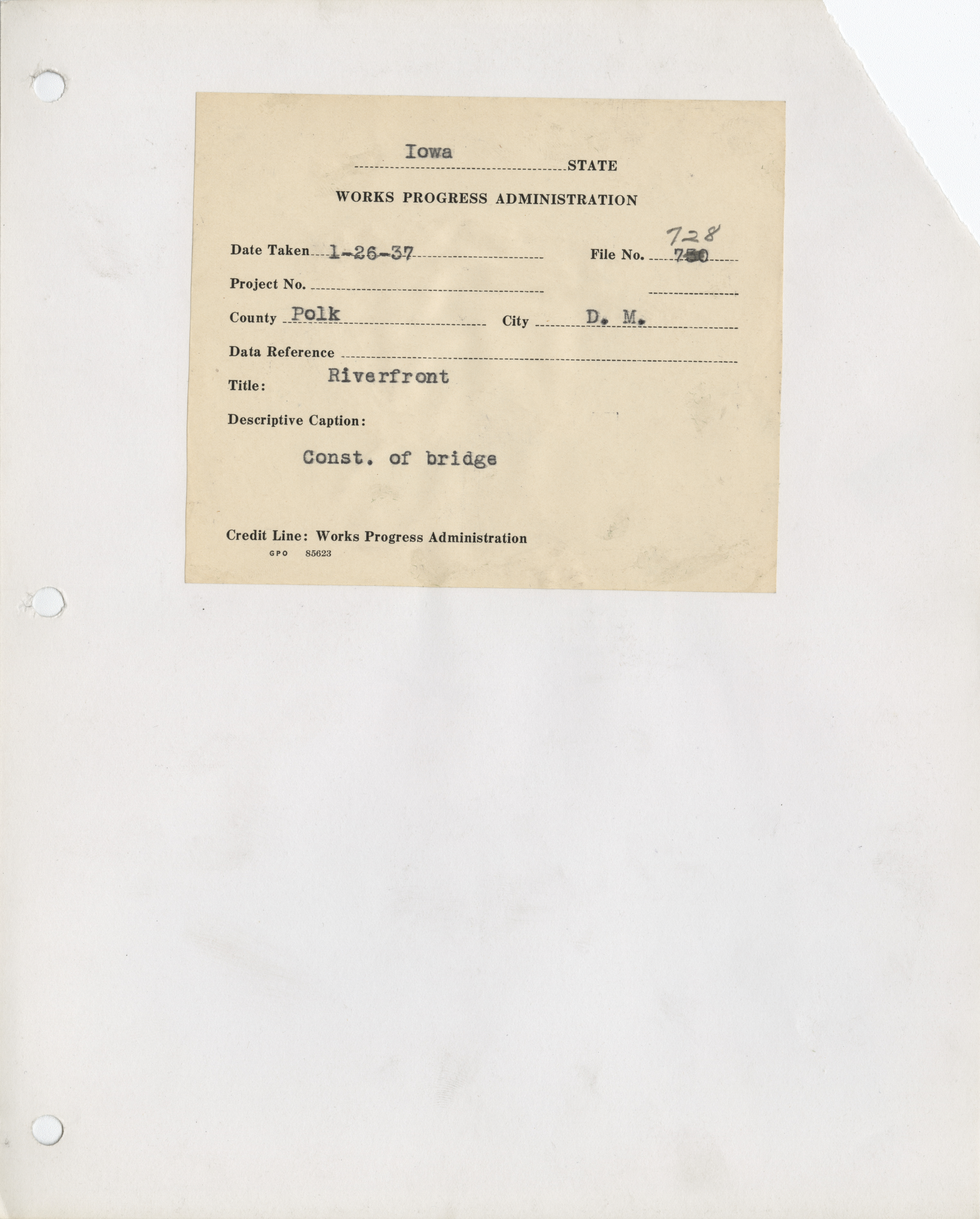 - "Photograph of the construction of a river bridge in Des Moines", Work Projects Administration (Iowa) Photographs, Iowa State University Library Digital Collections