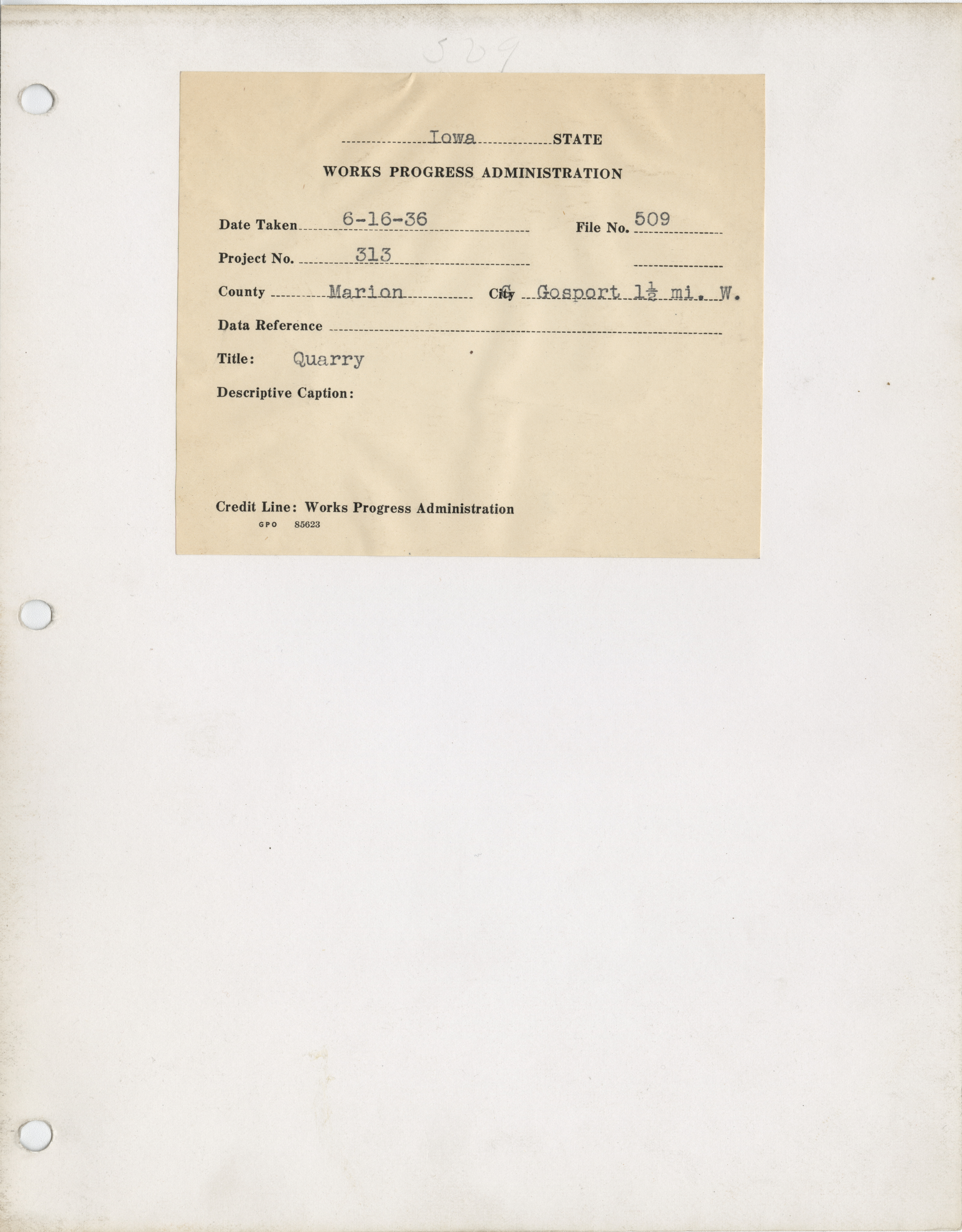 - "Photograph of a quarry in Marion County", Work Projects Administration (Iowa) Photographs, Iowa State University Library Digital Collections