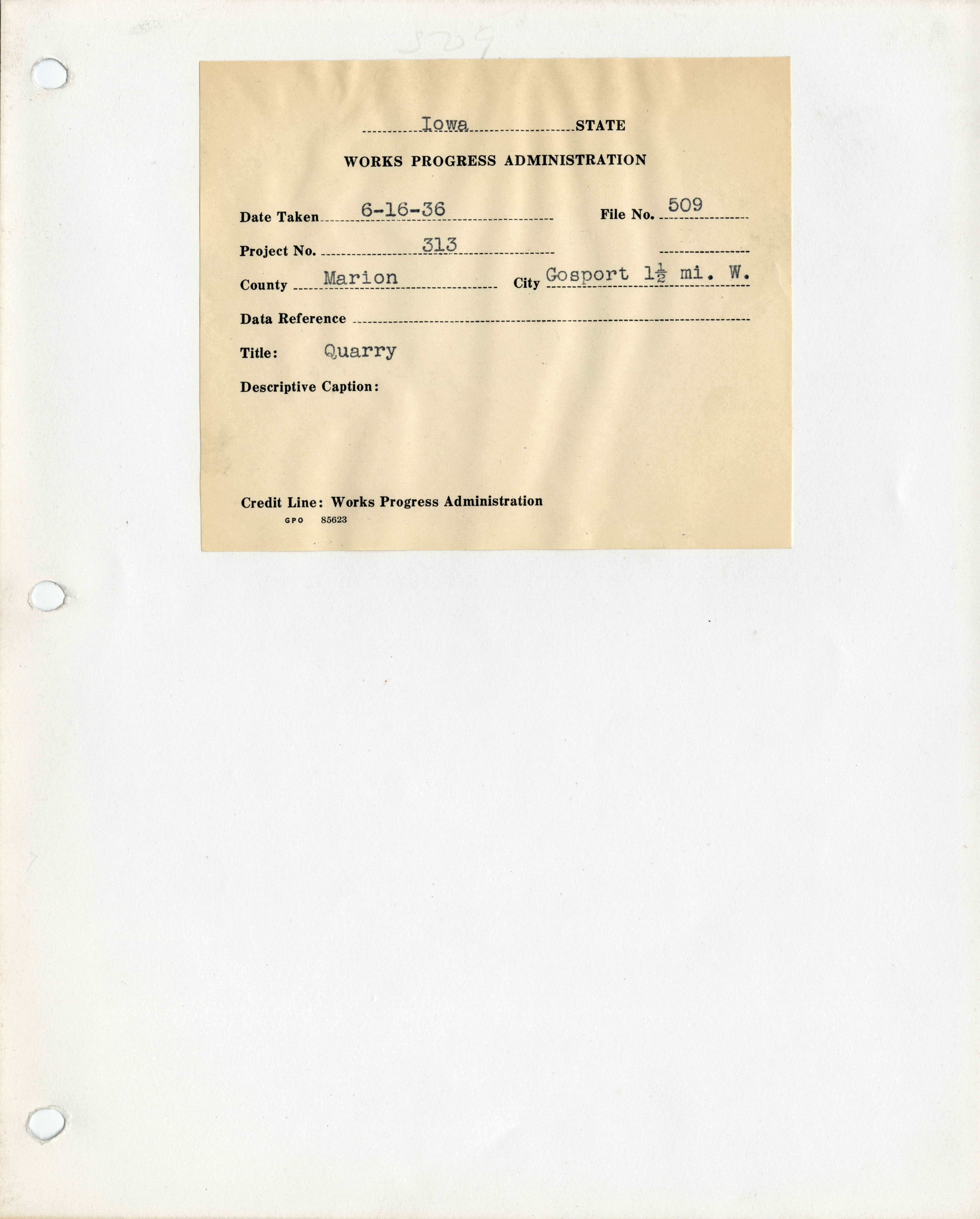 - "Photograph of people working at a quarry in Marion County", Work Projects Administration (Iowa) Photographs, Iowa State University Library Digital Collections