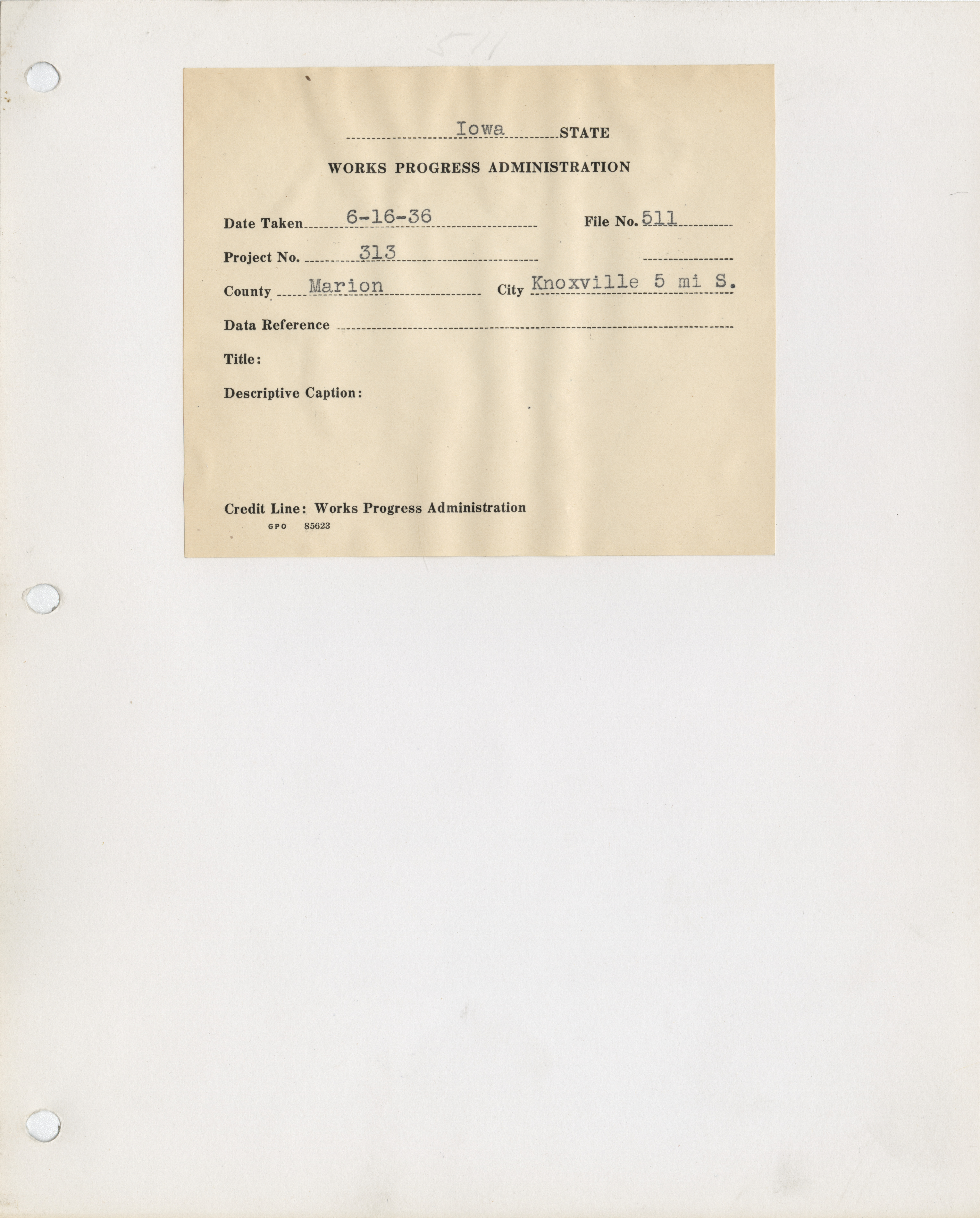 - "Photograph of a farm to market road five miles south of Knoxville in Marion County", Work Projects Administration (Iowa) Photographs, Iowa State University Library Digital Collections