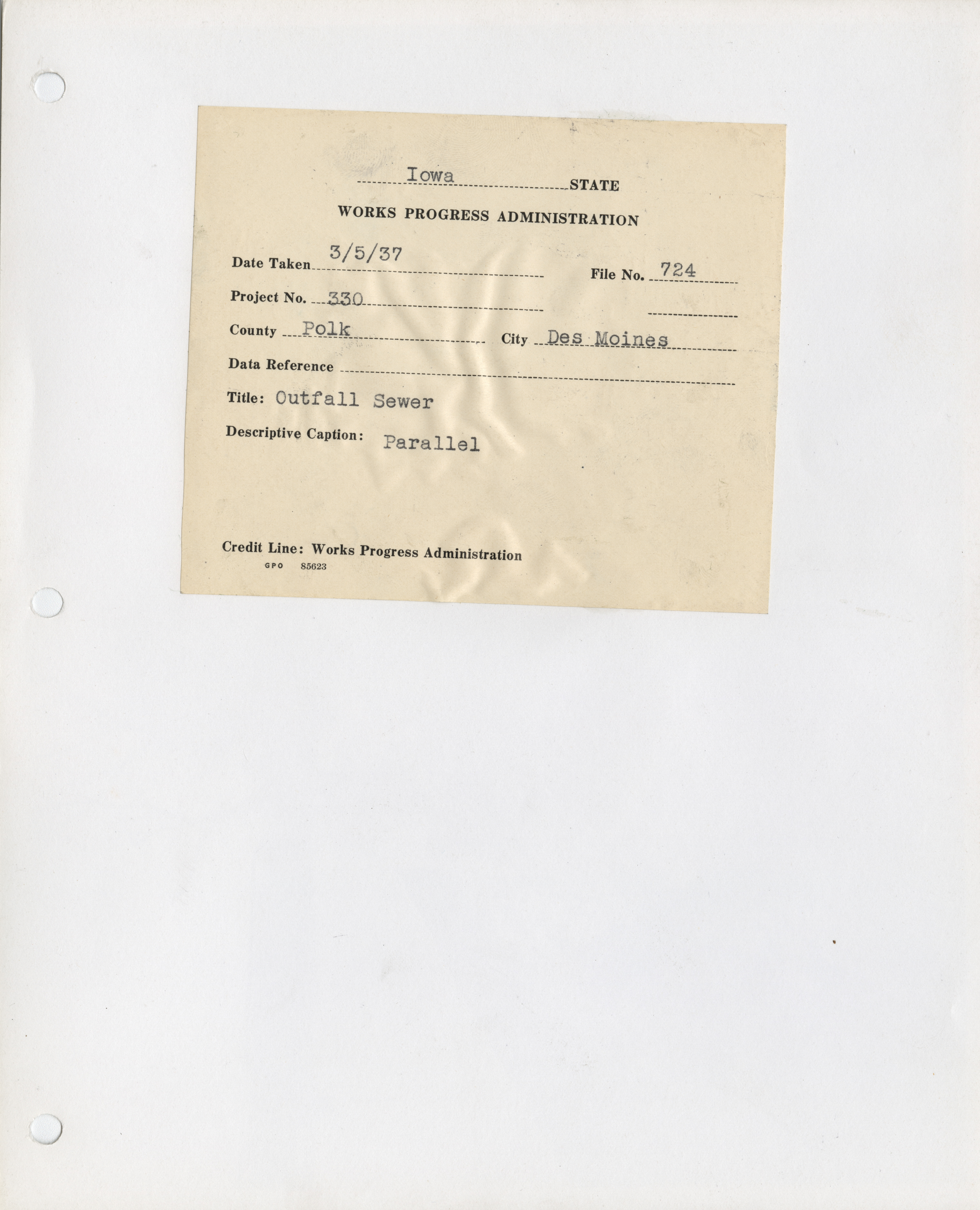 - "Photograph of people constructing an outfall sewer in Des Moines", Work Projects Administration (Iowa) Photographs, Iowa State University Library Digital Collections