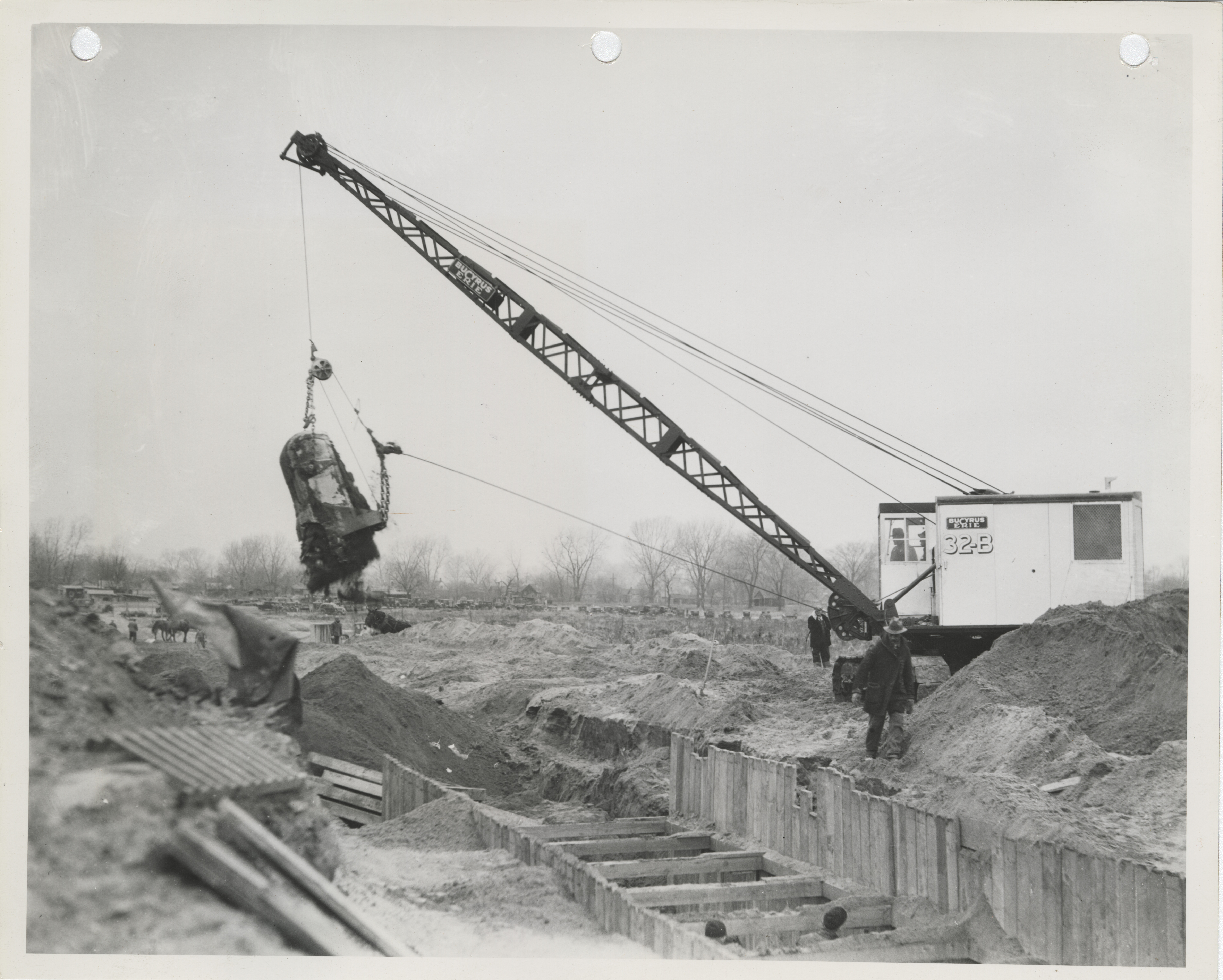 - "Photograph of a crane used in sewer construction in Des Moines", Work Projects Administration (Iowa) Photographs, Iowa State University Library Digital Collections