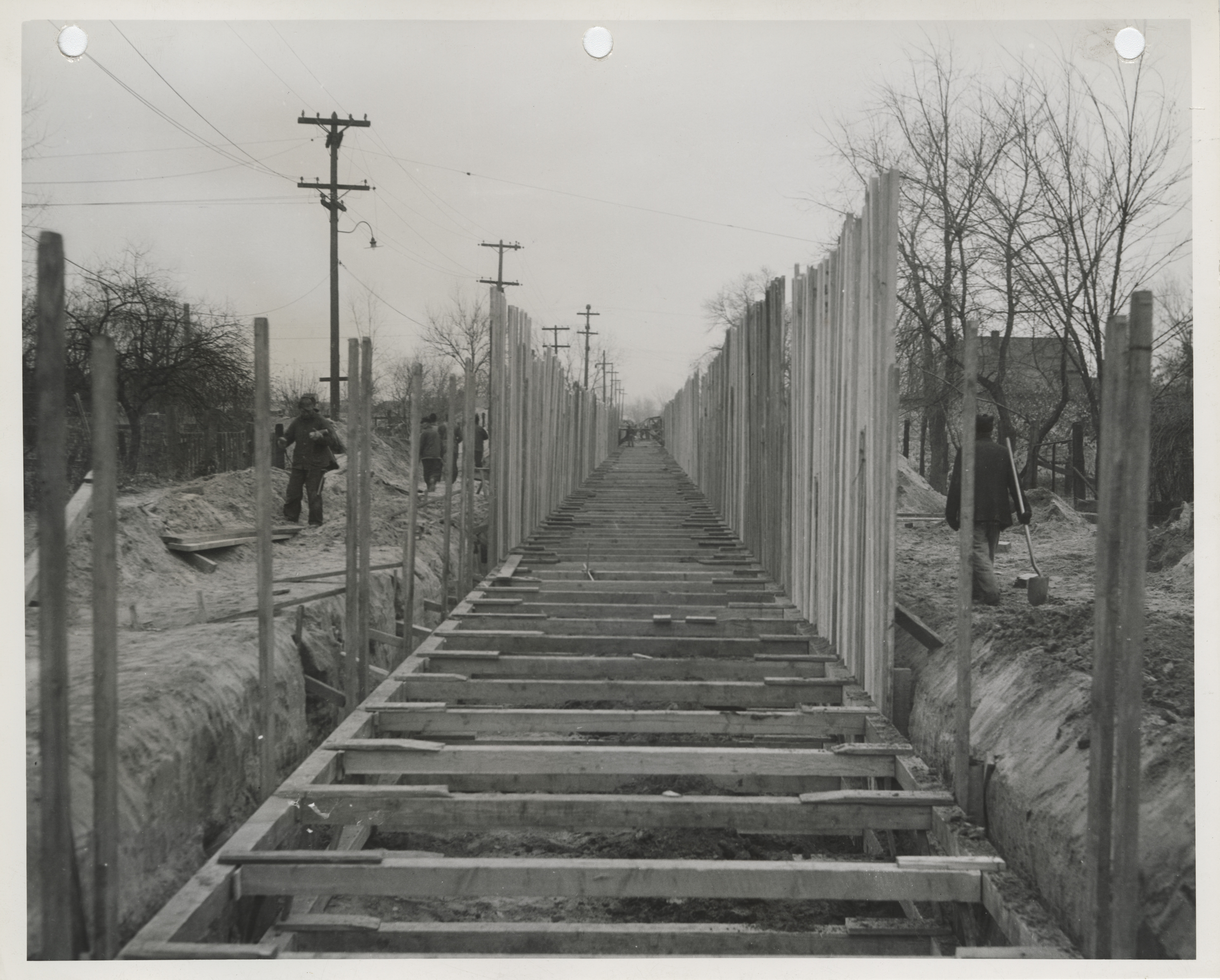 - Photograph of the construction of an outfall sewer at SE 14th St. in Des Moines